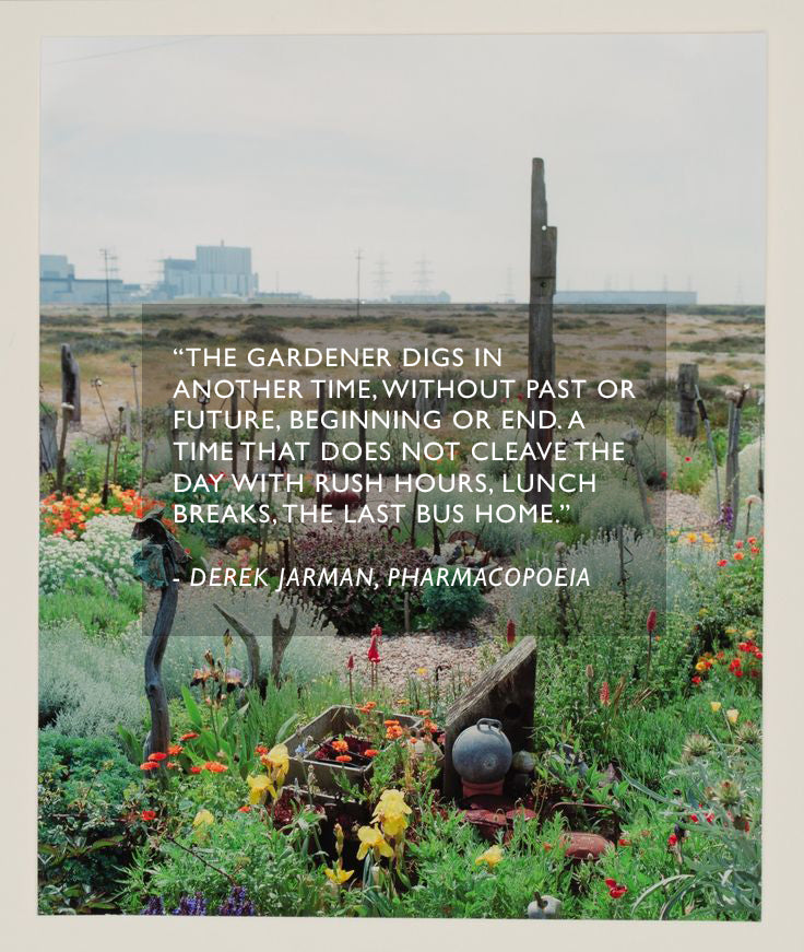 Lastly, the artist, filmmaker and activist Derek Jarman, who found solace and motive in raising a garden on the barren rocky desert-like conditions of Dungeness, writing extensively on the subject. After his death, his Prospect Cottage in the shadow of a nuclear power plant remains a haven and creative hub for young artists.