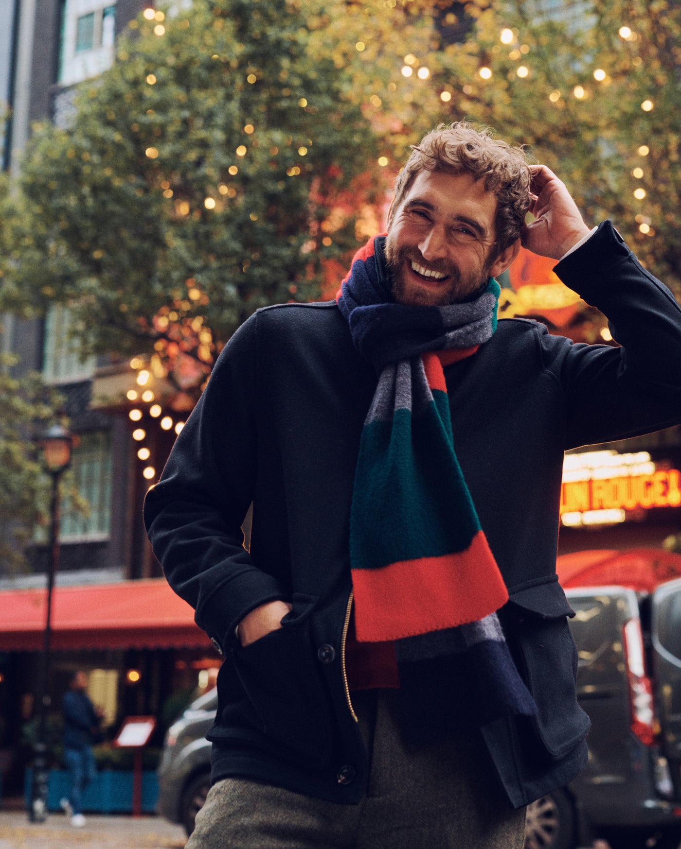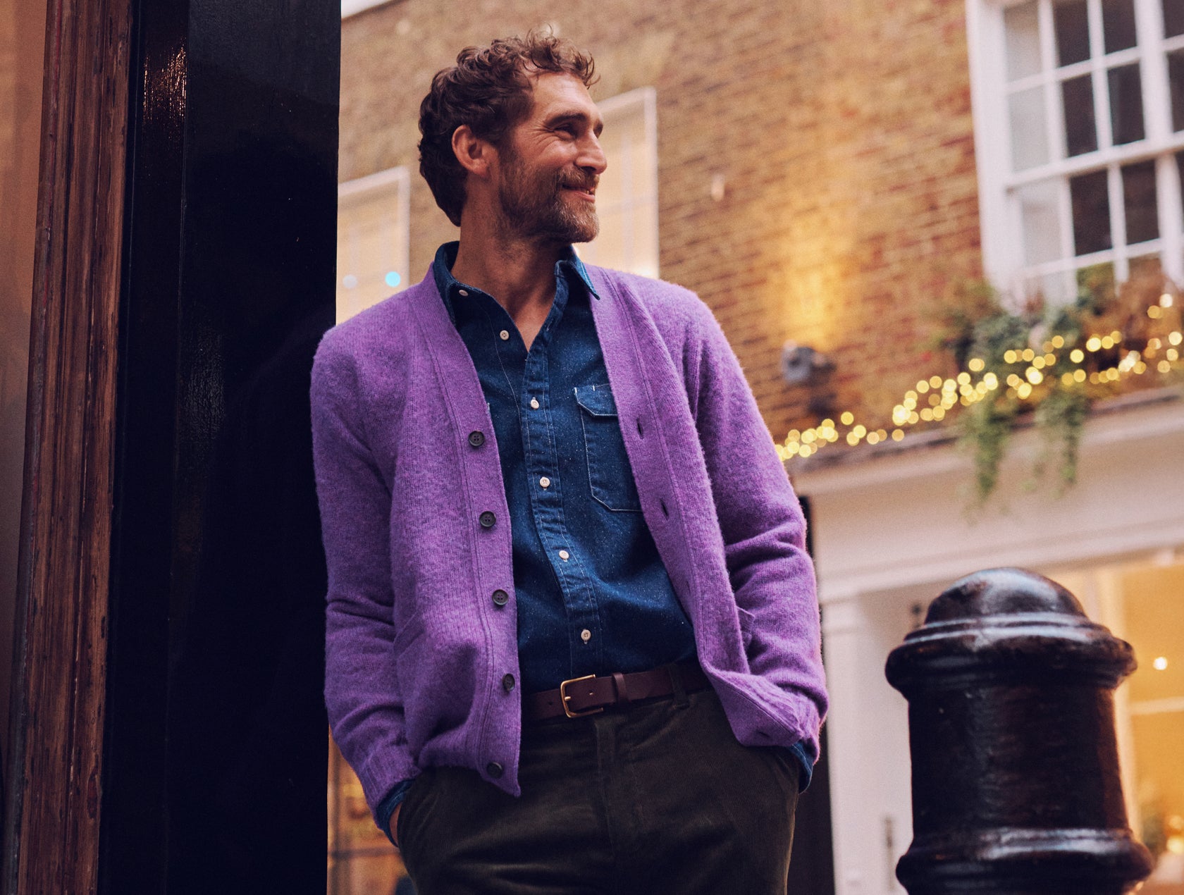 Where you can have a break from the norm is being a bit more ambitious than a man might be if he was shopping for himself. If he’s a fan of knitwear, go for a Fairisle pattern, pink Shetland or a lightweight lilac; if he likes a pocket square in a solid colour, experiment with a purple paisley or a wine foulard; add a flash of colour and stripe to his socks. Subtle switch-ups but they’ll be noticed.