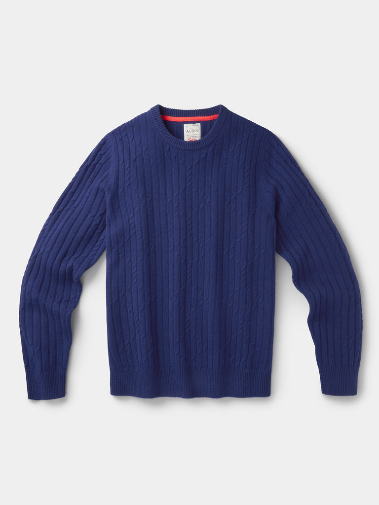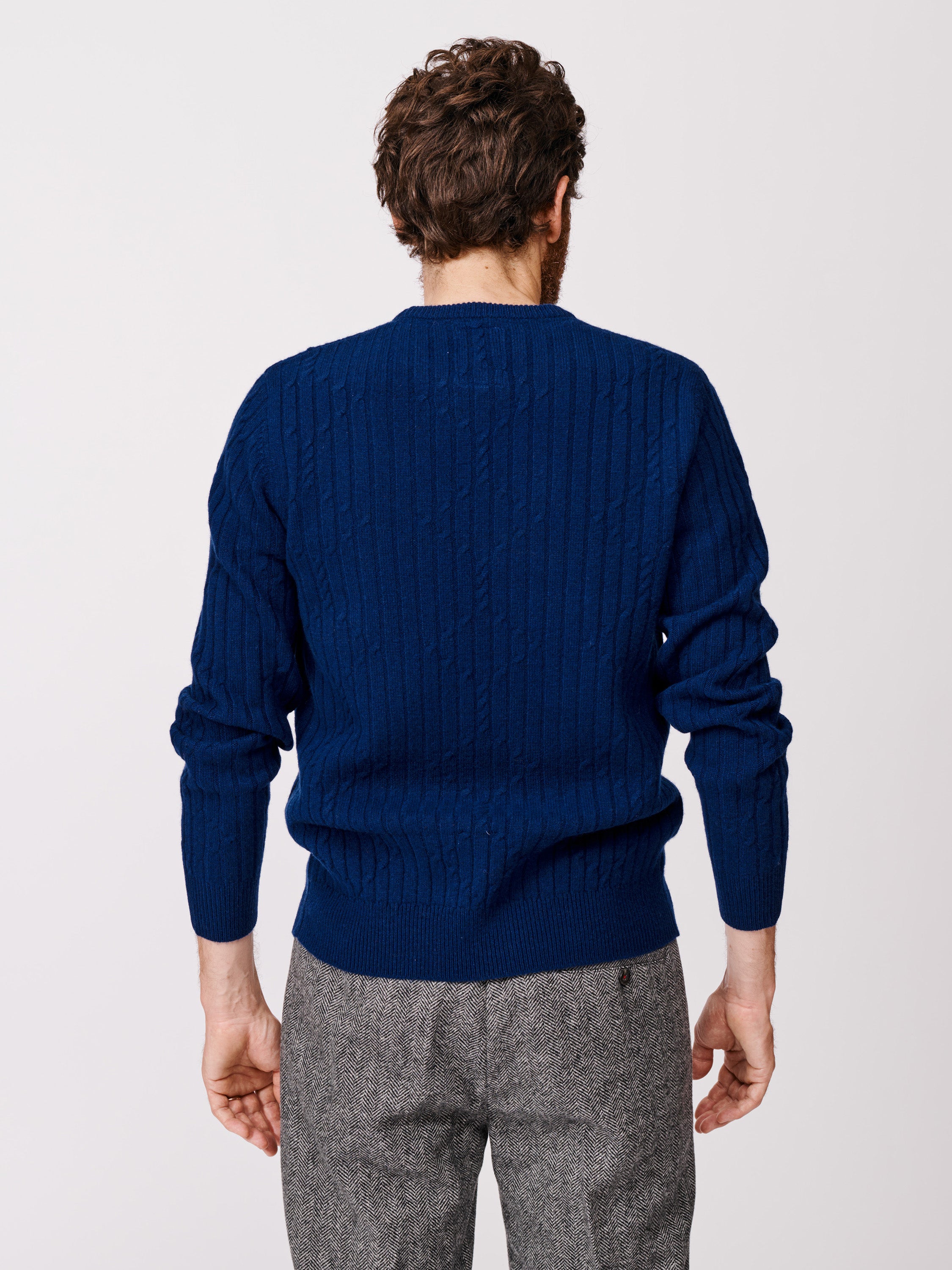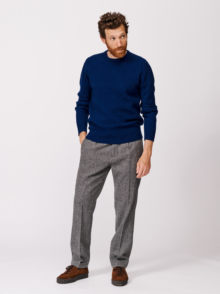 The Saxby is part of a finer gauge knitwear range that we have developed so you can wear it with our suit range as well as with a casual trouser. This classic knit has an intricate cable design moving around the body. The Cashmere content in the yarn mix goes along way and makes the jumper a pleasure to wear. Formal or casual styling the Saxby is a timeless classic.
