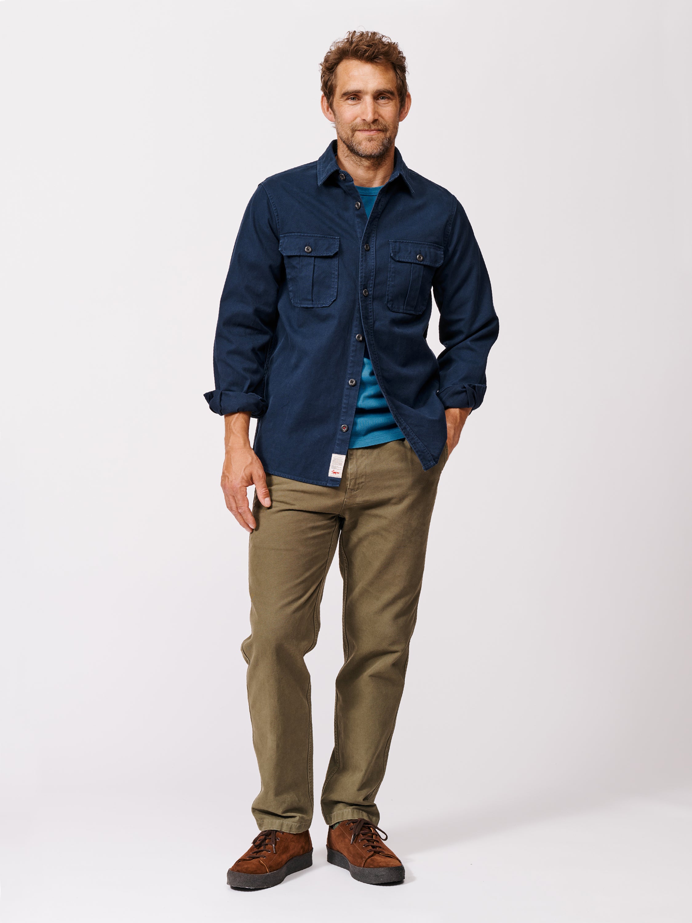 The Dovedale has the charm and effortless style of a well-worn painter’s shirt. Cut from a sturdy cotton twill that’s been washed down, it’s finished off with twin flap pockets on the chest.