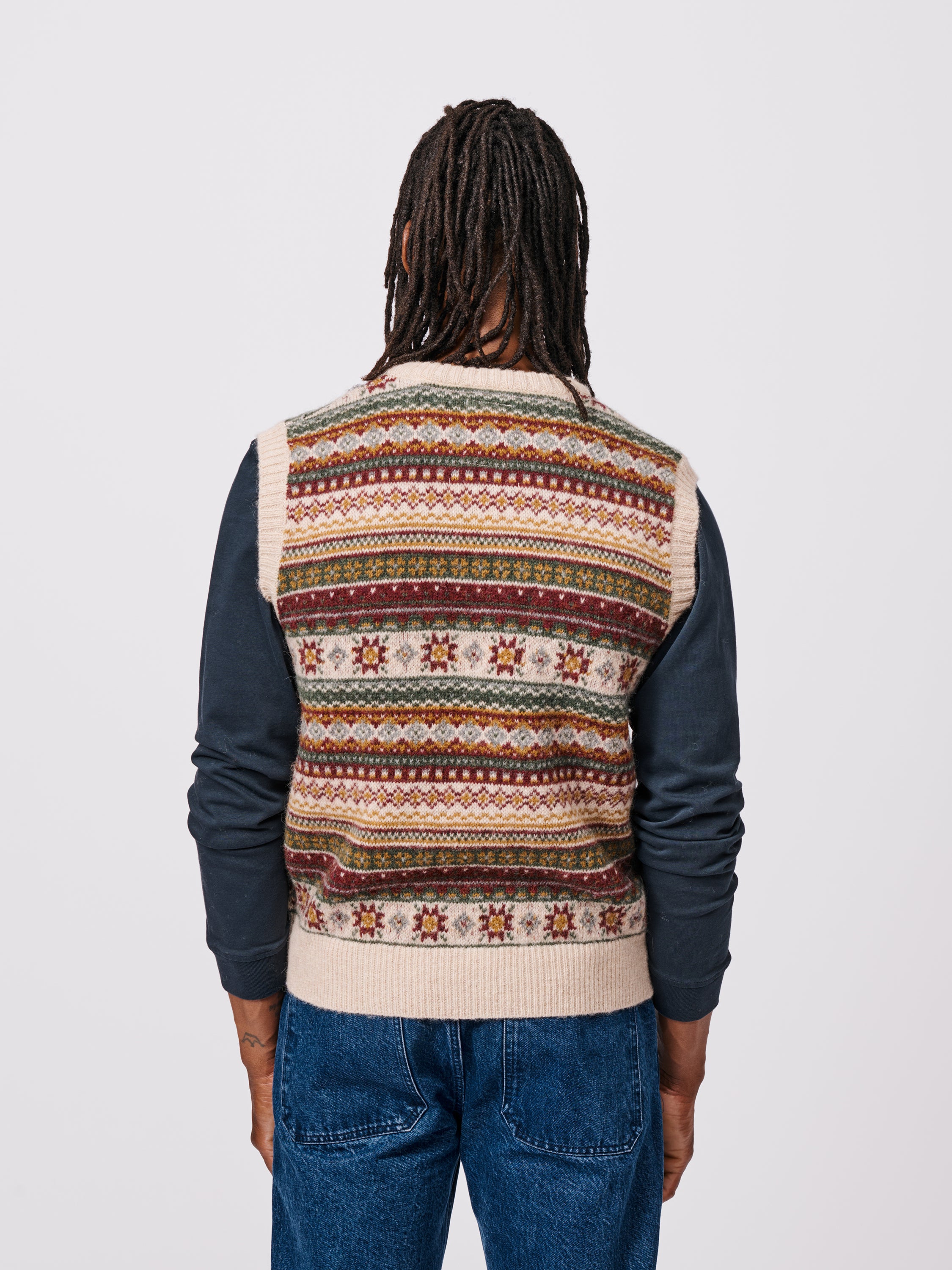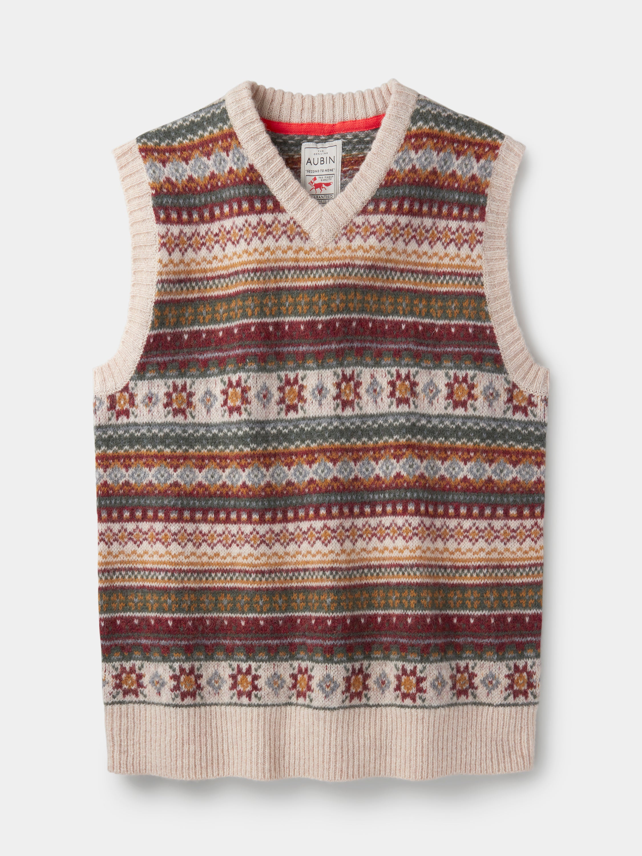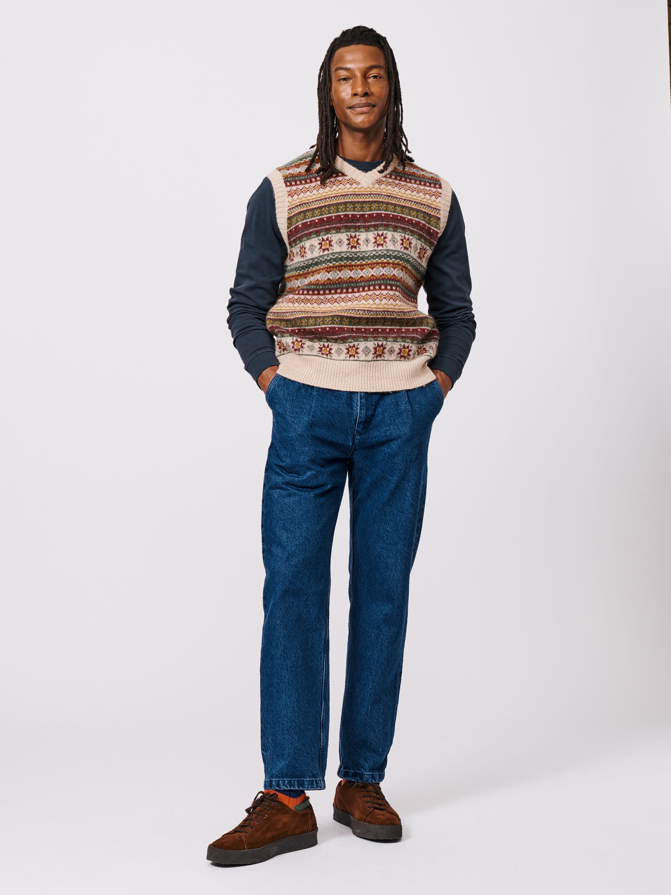 The slip-over Fair Isle knit, an essential layering piece for any wardrobe. Embrace your inner Granville with this playful take on a British heritage favourite.