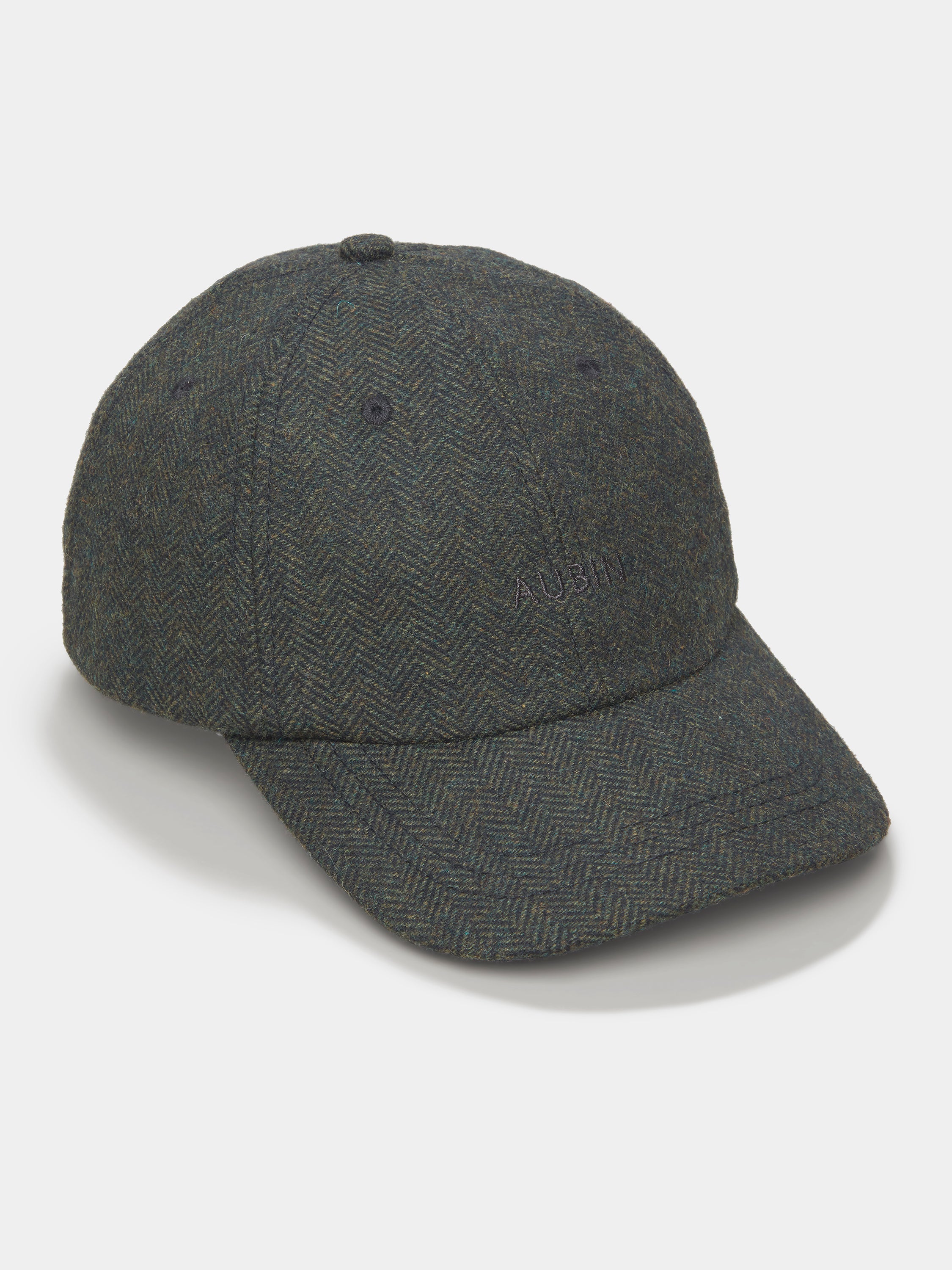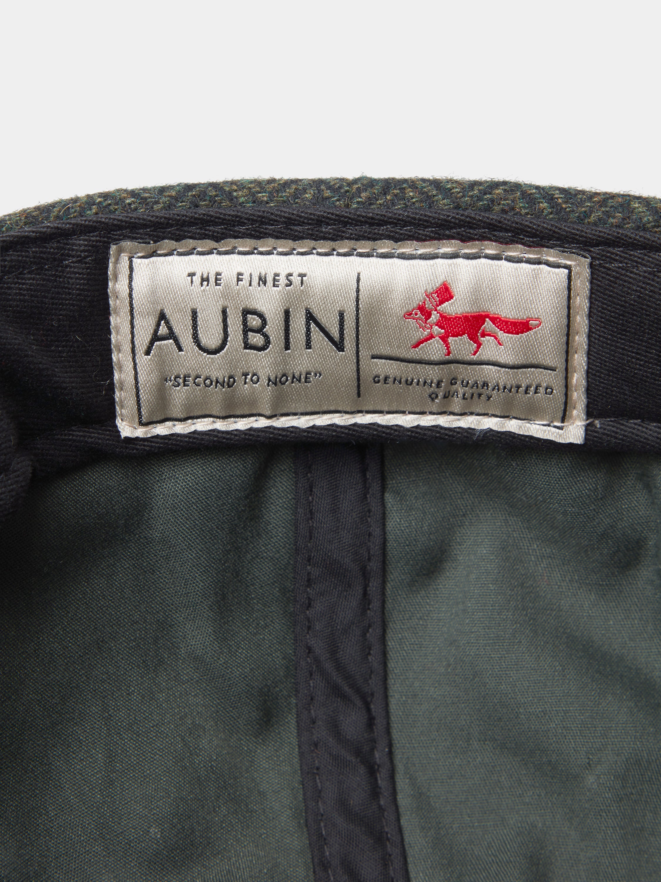 Crafted in wool with a classic herringbone design, this cap features an adjustable leather back strap, embroidered Aubin branding at the front, and a signature fox logo at the back.