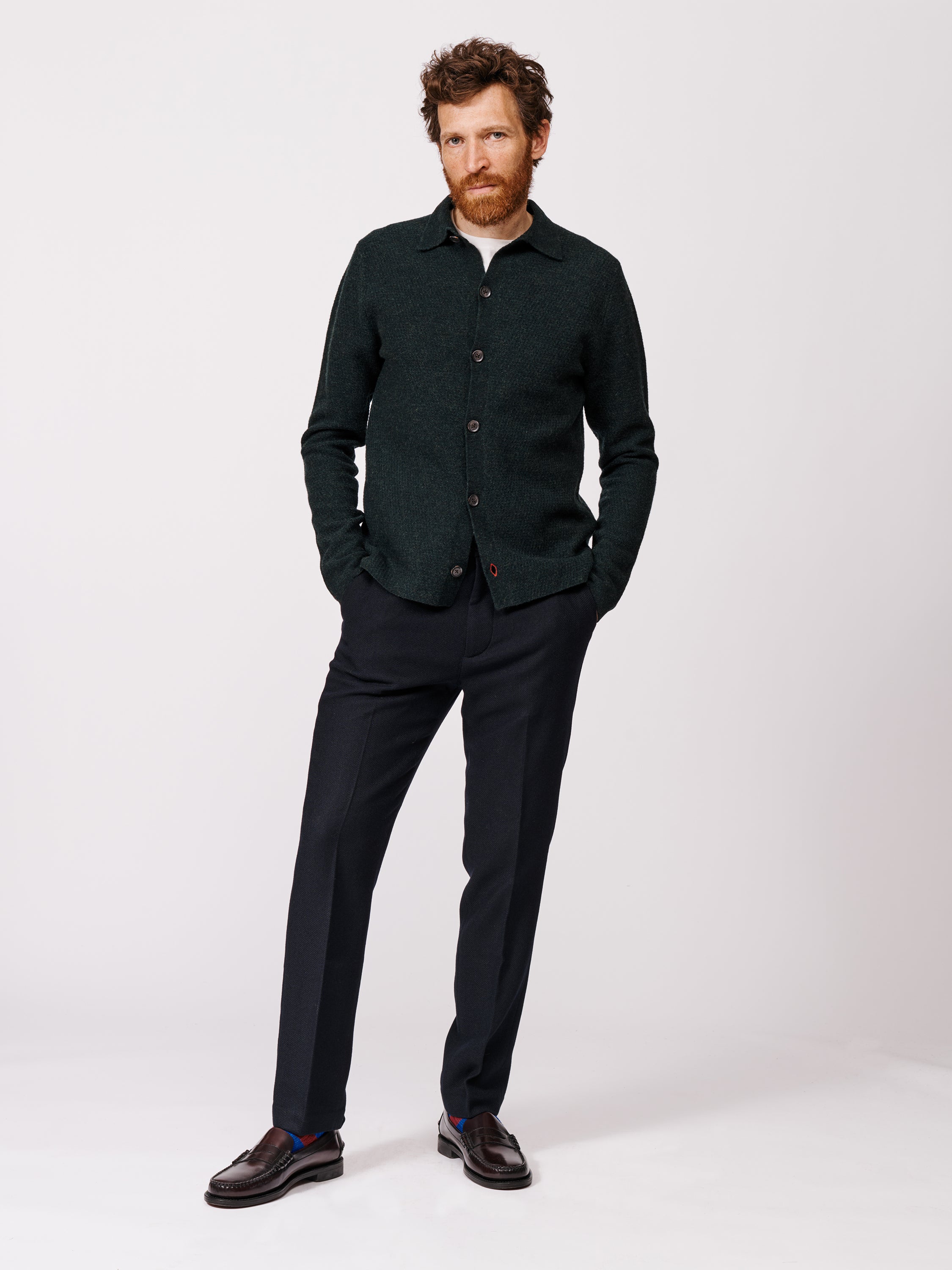 The Norman is part of a finer gauge knitwear range that we have developed so you can wear it with our suit range as well as with a casual trouser. This button through cardigan has a collar with a fine basket weave stitch running throughout the body. The extra fine merino yarn makes this cardigan a pleasure to wear. Formal or casual styling the Norman is a timeless classic.