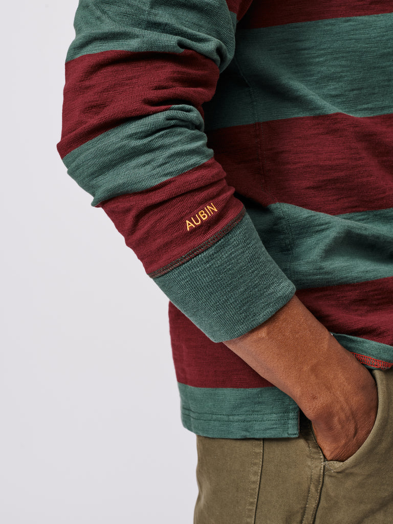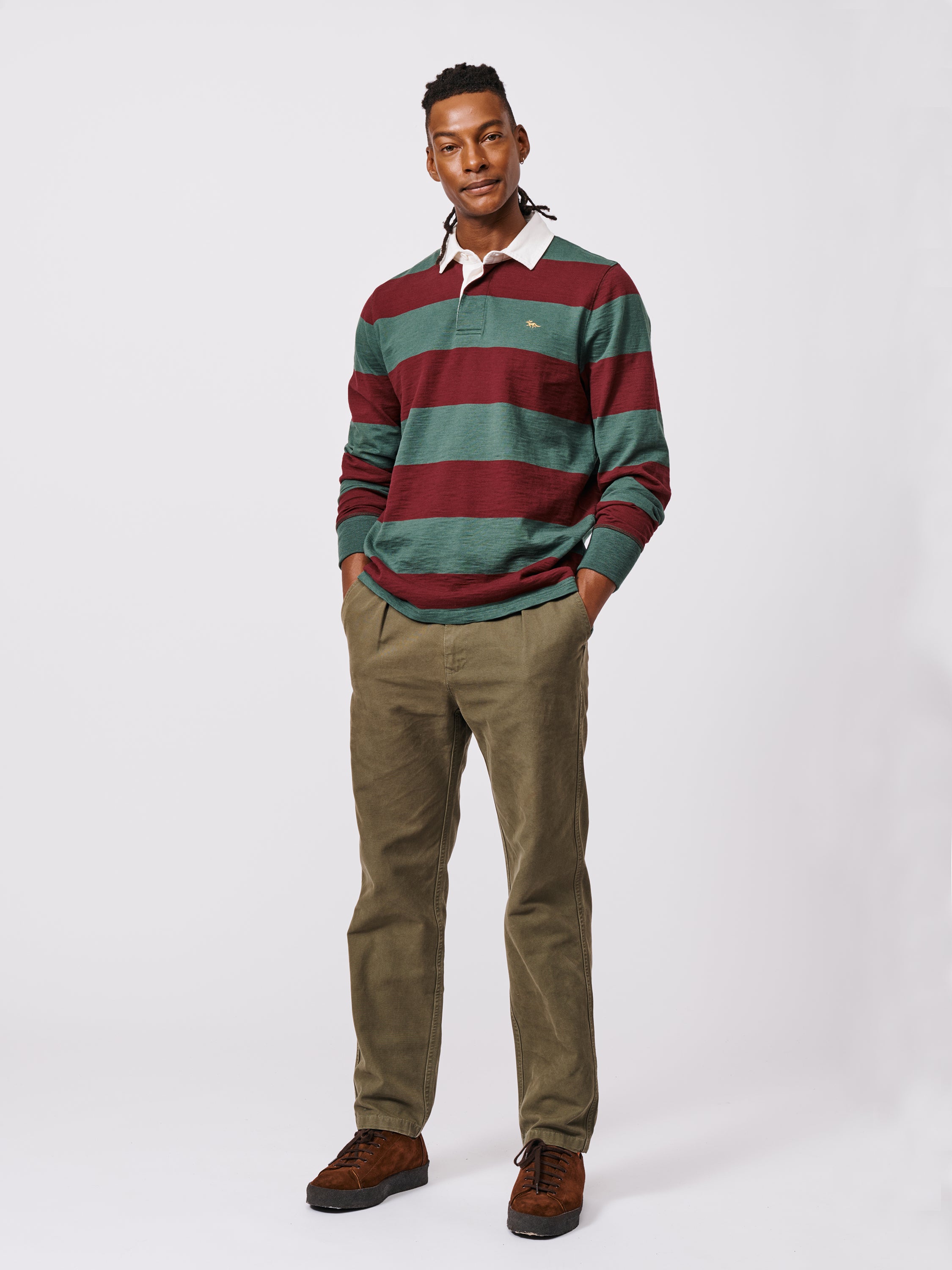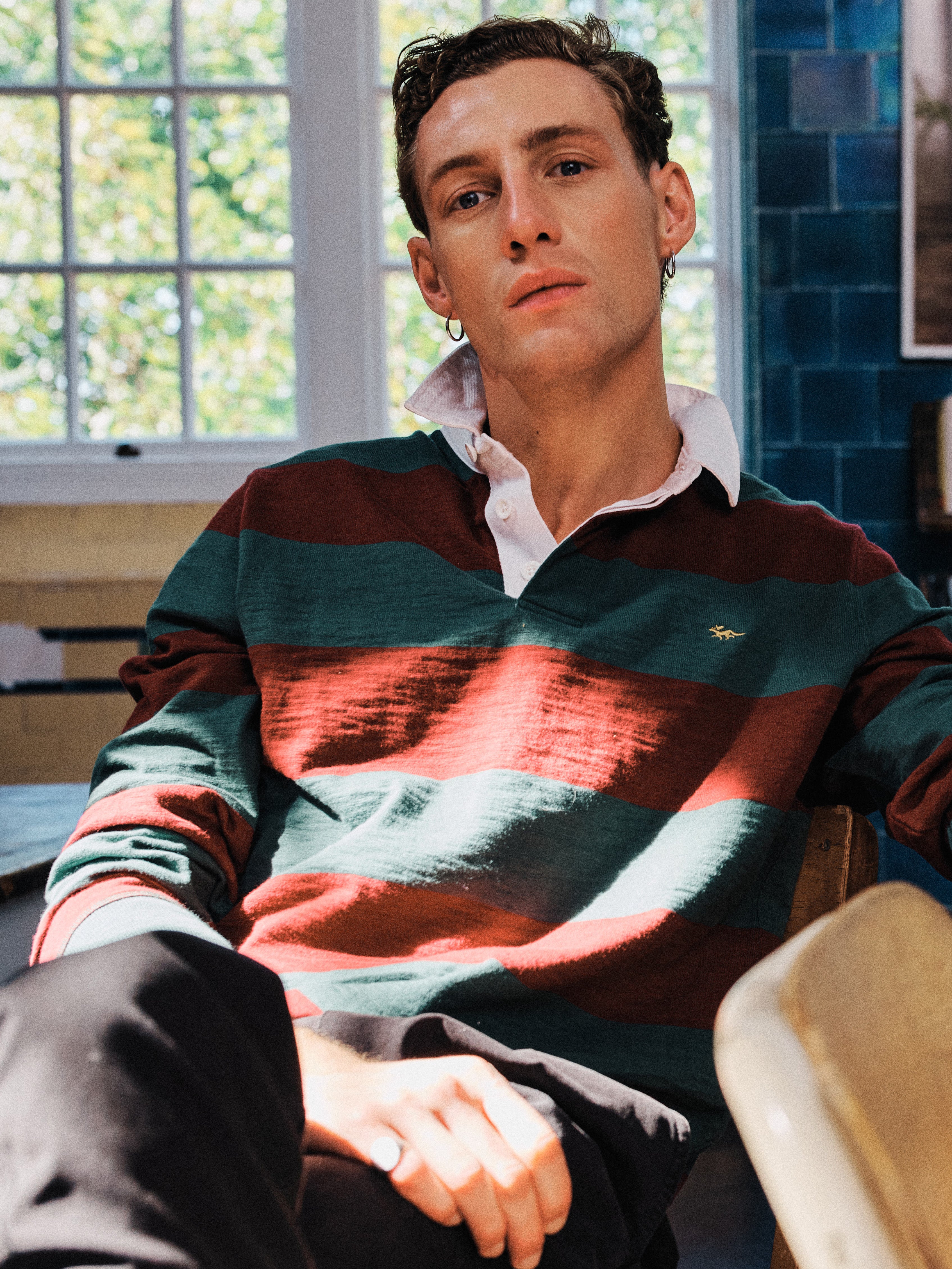 The Irnham rugby shirt harks back to the golden age of sportswear, when fabrics were dense, heavy, and tough, and details highly considered. It’s cut from a weighty jersey with a rich slubbed texture, and has rubberised buttons hidden beneath a herringbone-lined placket.