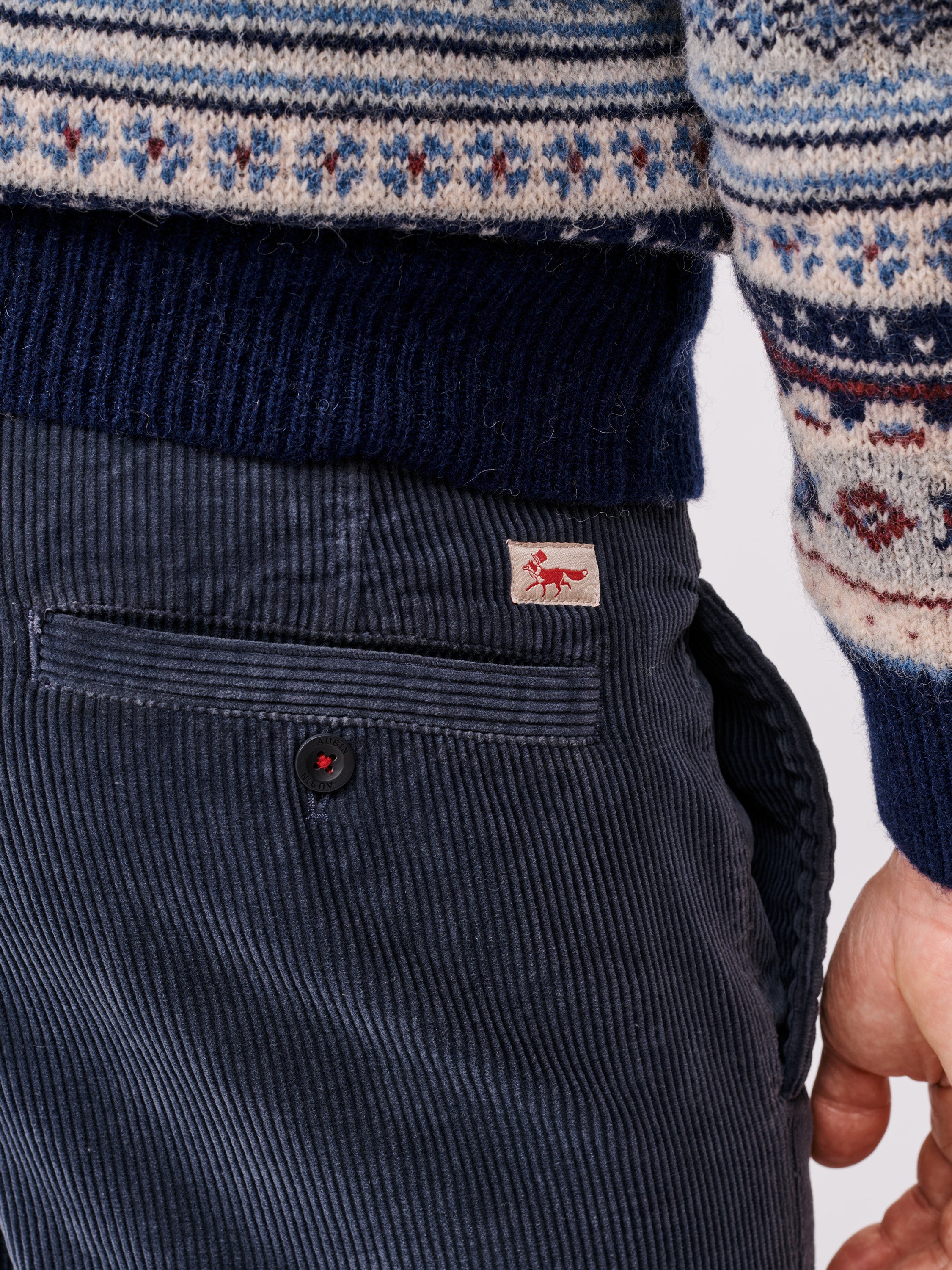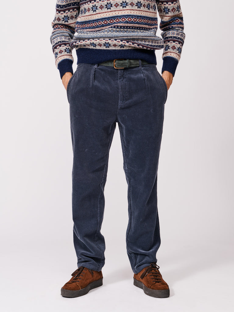 This trouser is an ode to everything 'trad-dad' or geography teacher attire. We love the use of a wide whale cord in this single pleat trouser silhouette. This heritage corduroy fabric has a luxurious hand feel and will last a lifetime.