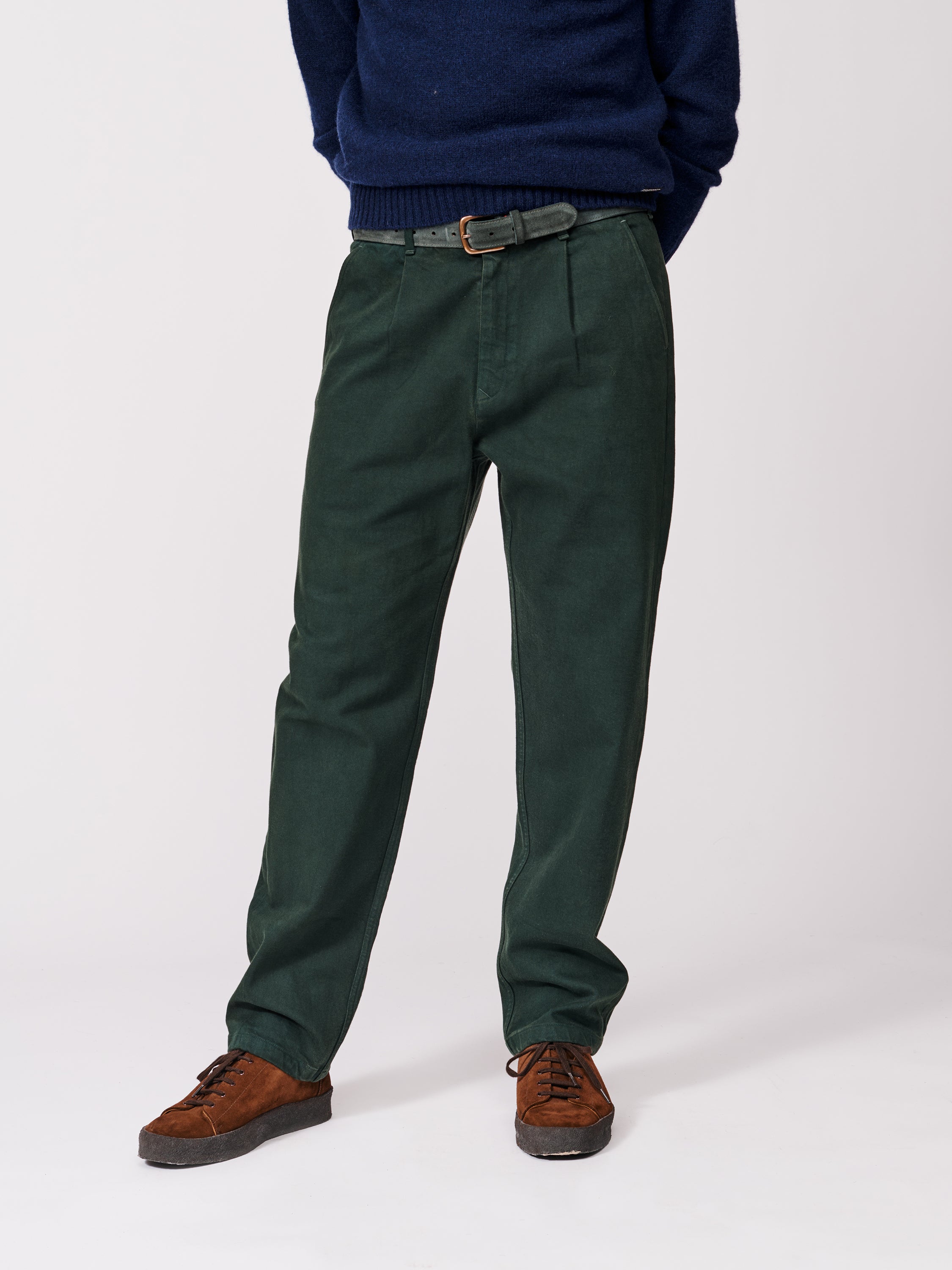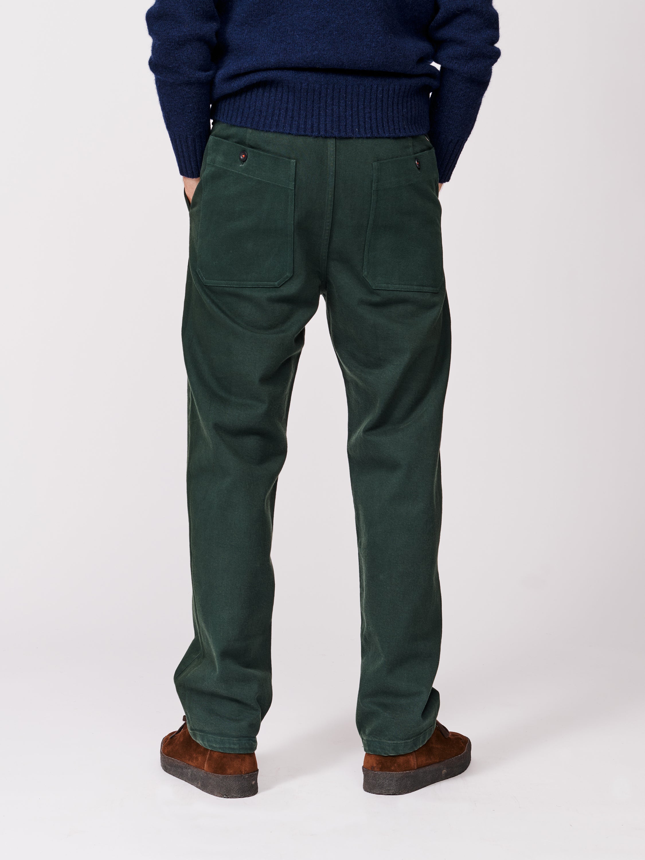 The Cleverton trousers are heavily workwear inspired, with a higher rise and roomier fit. Just like the vintage workwear that influenced them, these will only improve over time.