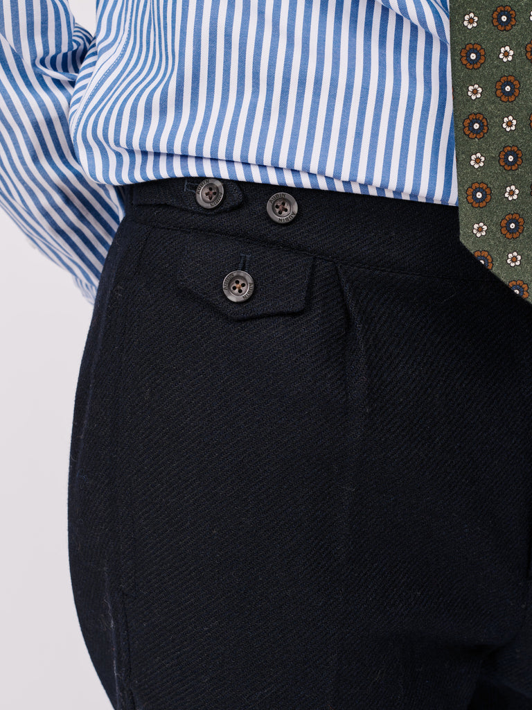 - Navy Flannel - Model is 6ft 0.5”, Waist 32”, chest 39” and wears a Size 32 waist.