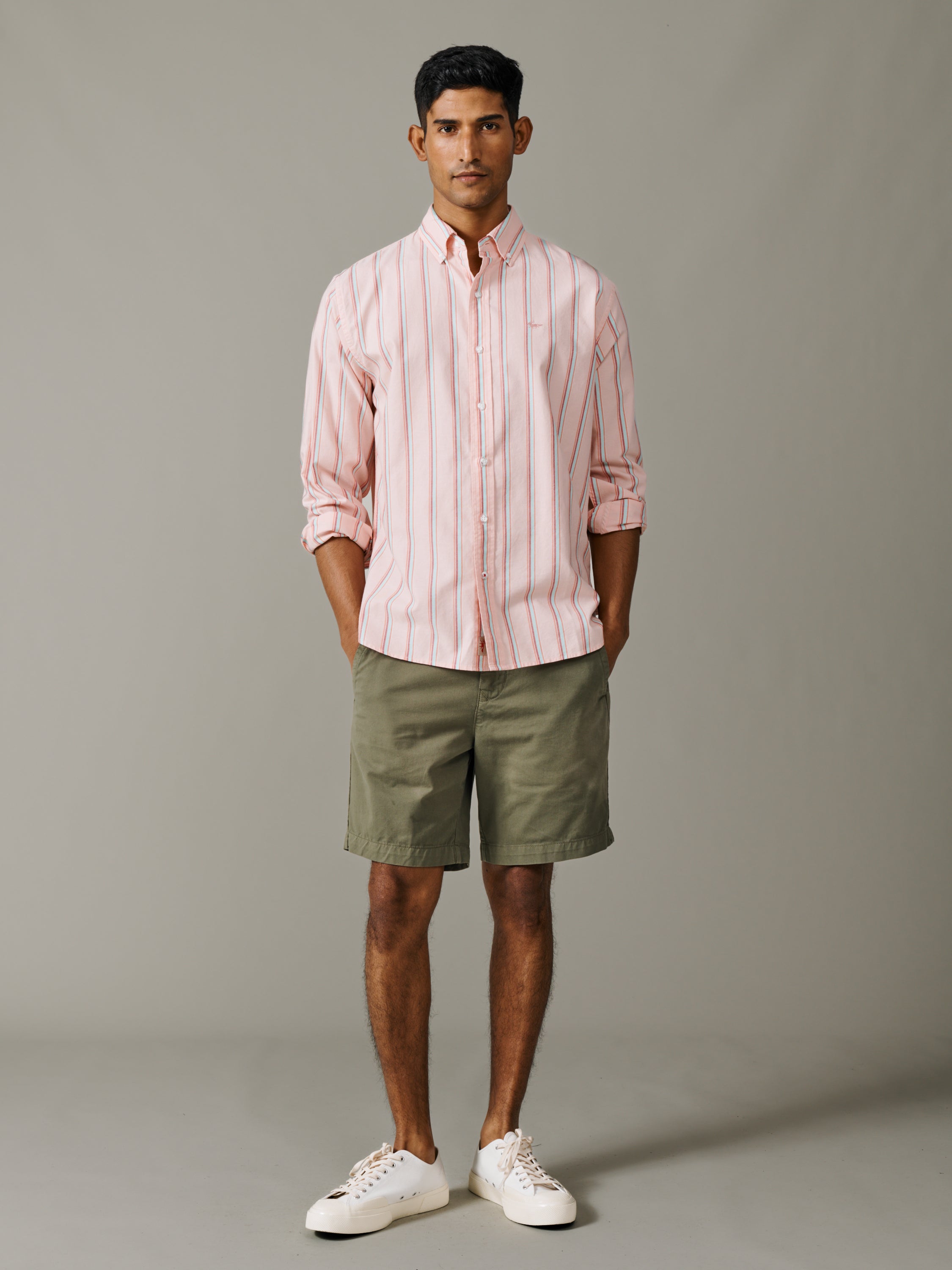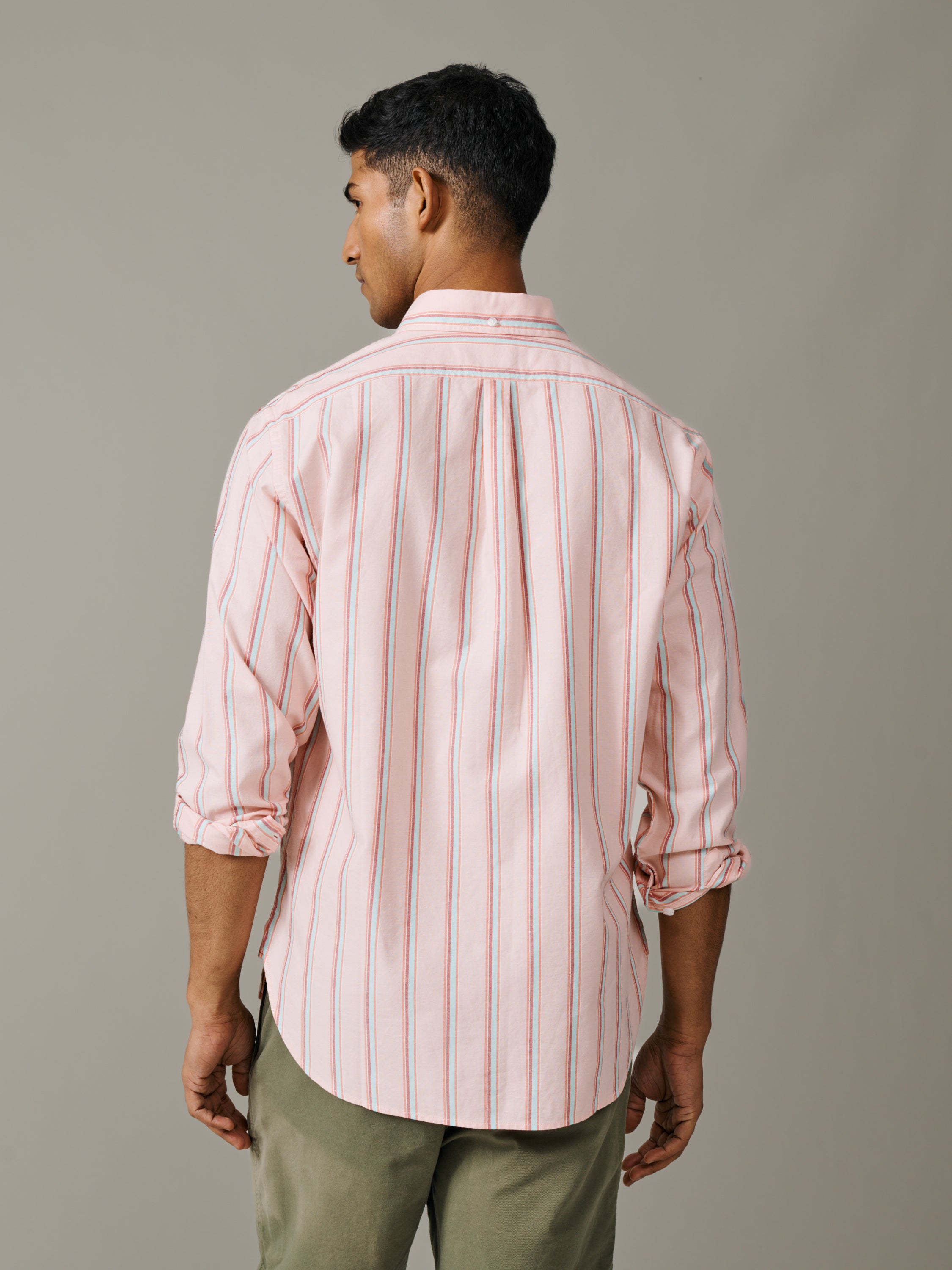 Walesby Lightweight Relaxed Oxford Shirt Coral Stripe