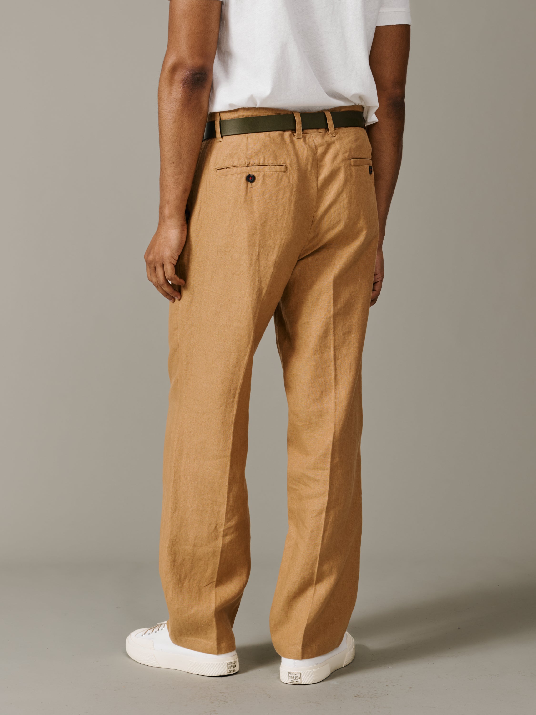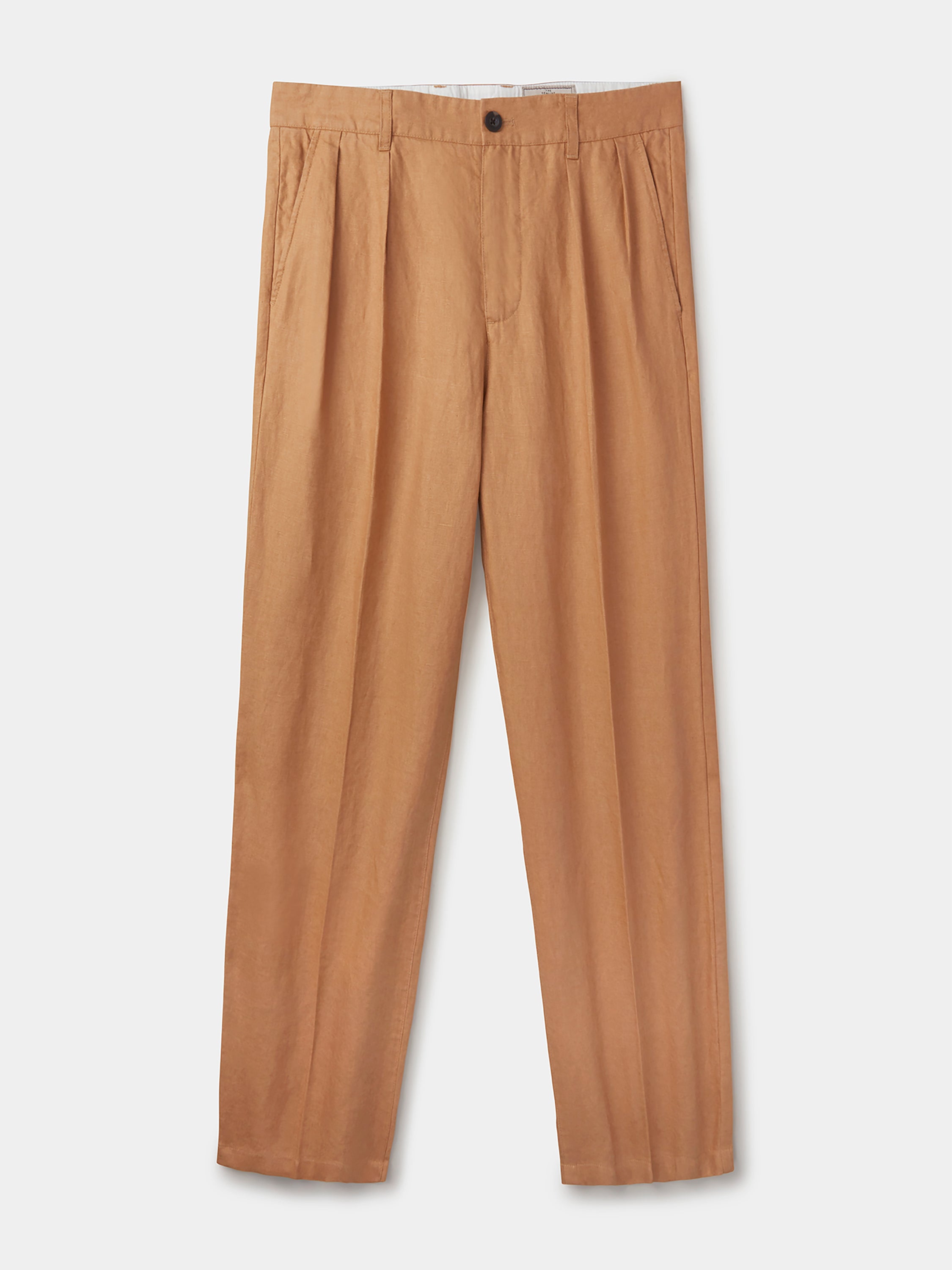 • Double pleat front, with a wider leg silhouette, sit just below the natural waistline