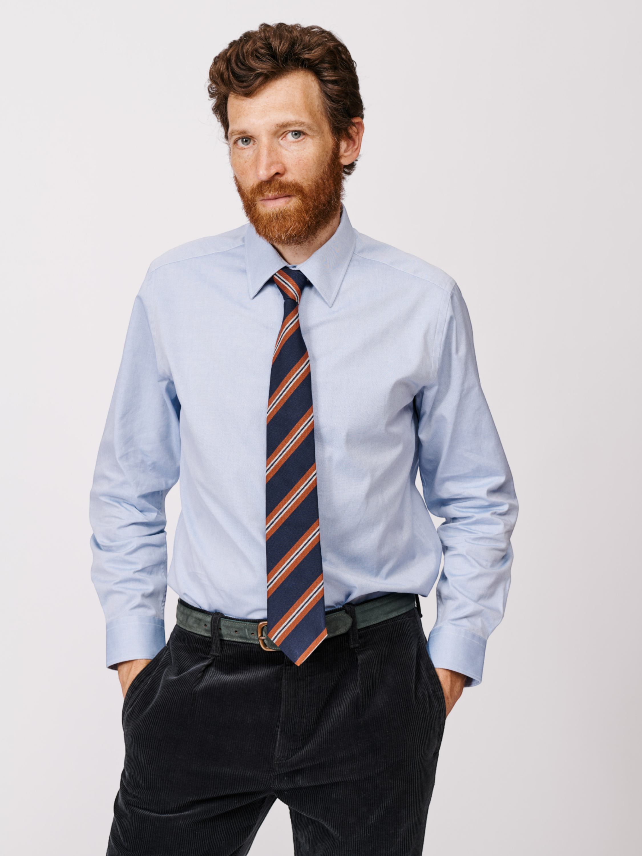 We’ve smartened ourselves up a little this season and decided to make a ‘proper’ formal shirt. The Hardy has a cut away collar with removable collar bones. Made in a 2-fold cotton fabric, with a dense construction. This shirt is available in collar sizes only and a very limited run.