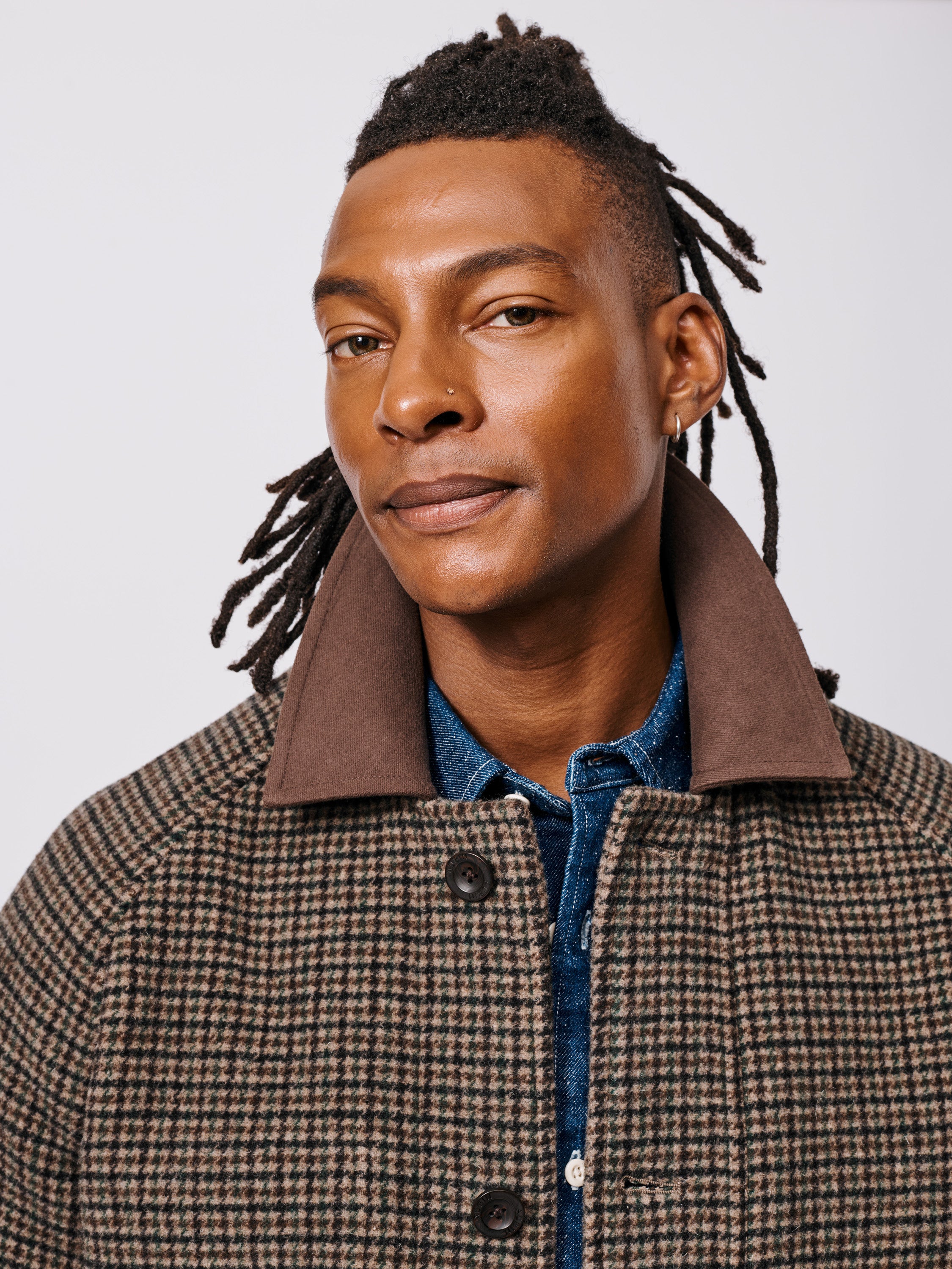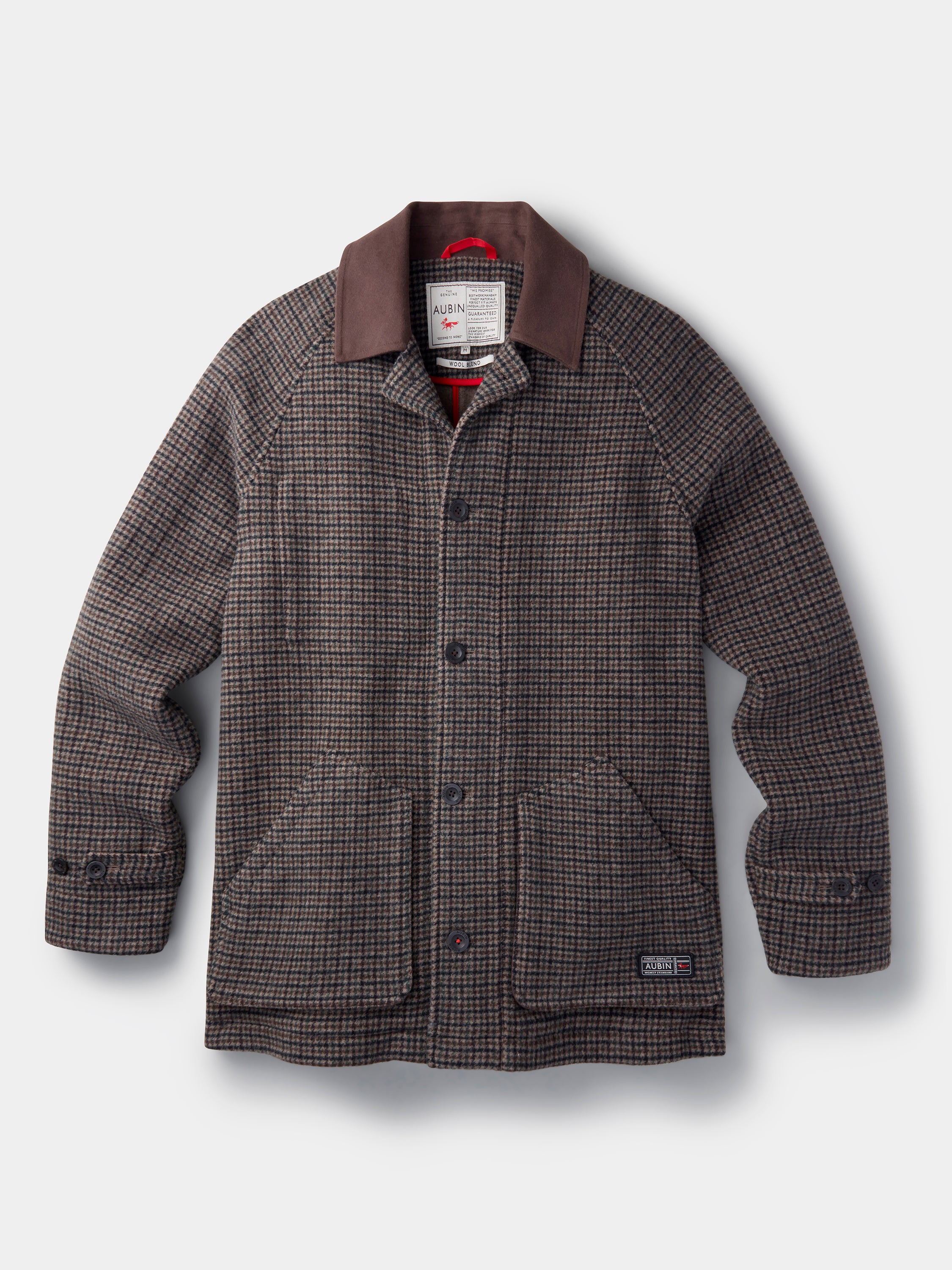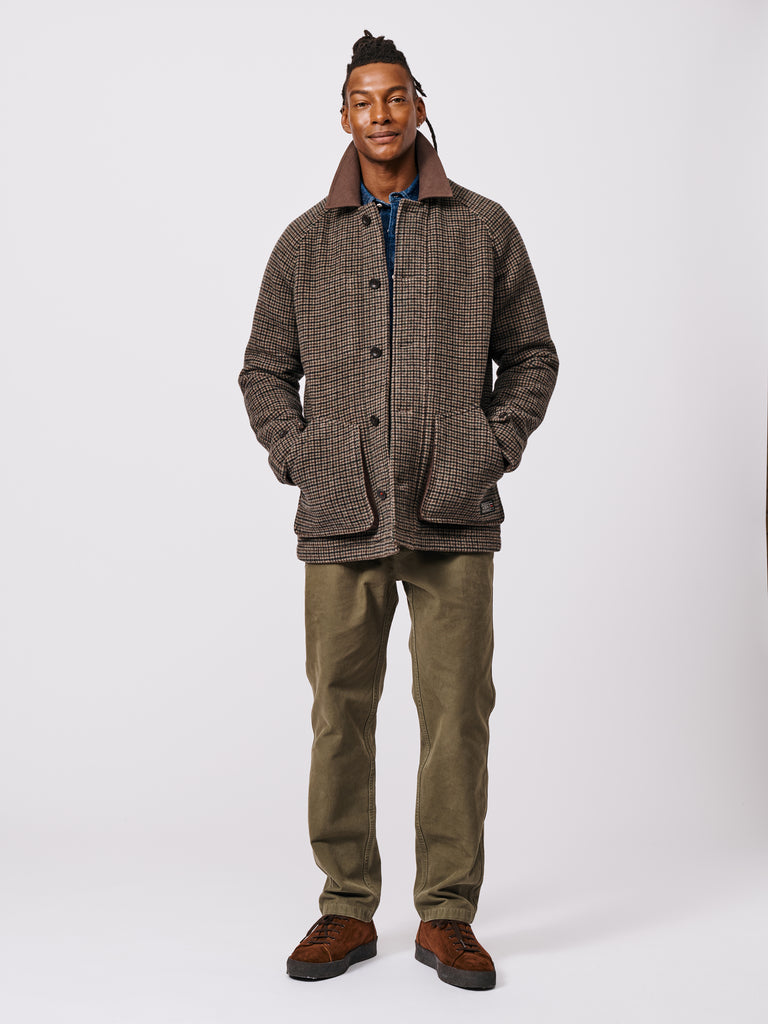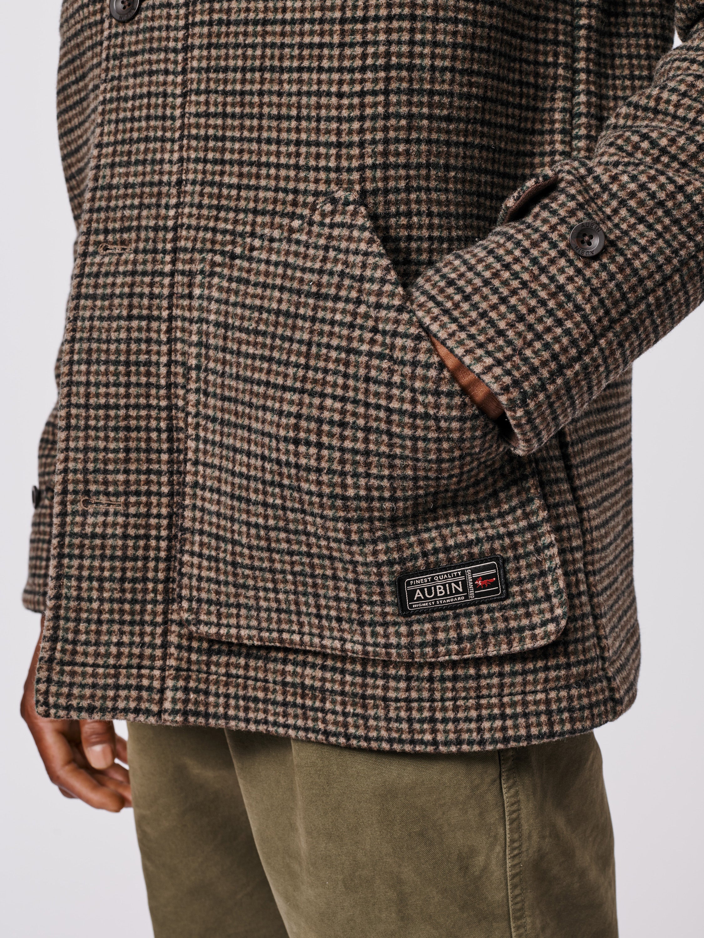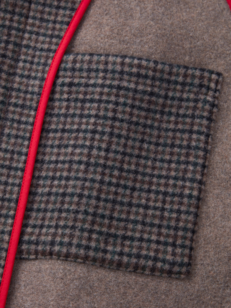 - Wool mix double cloth, with small grid check on the outer and plain on the inside of the jacket