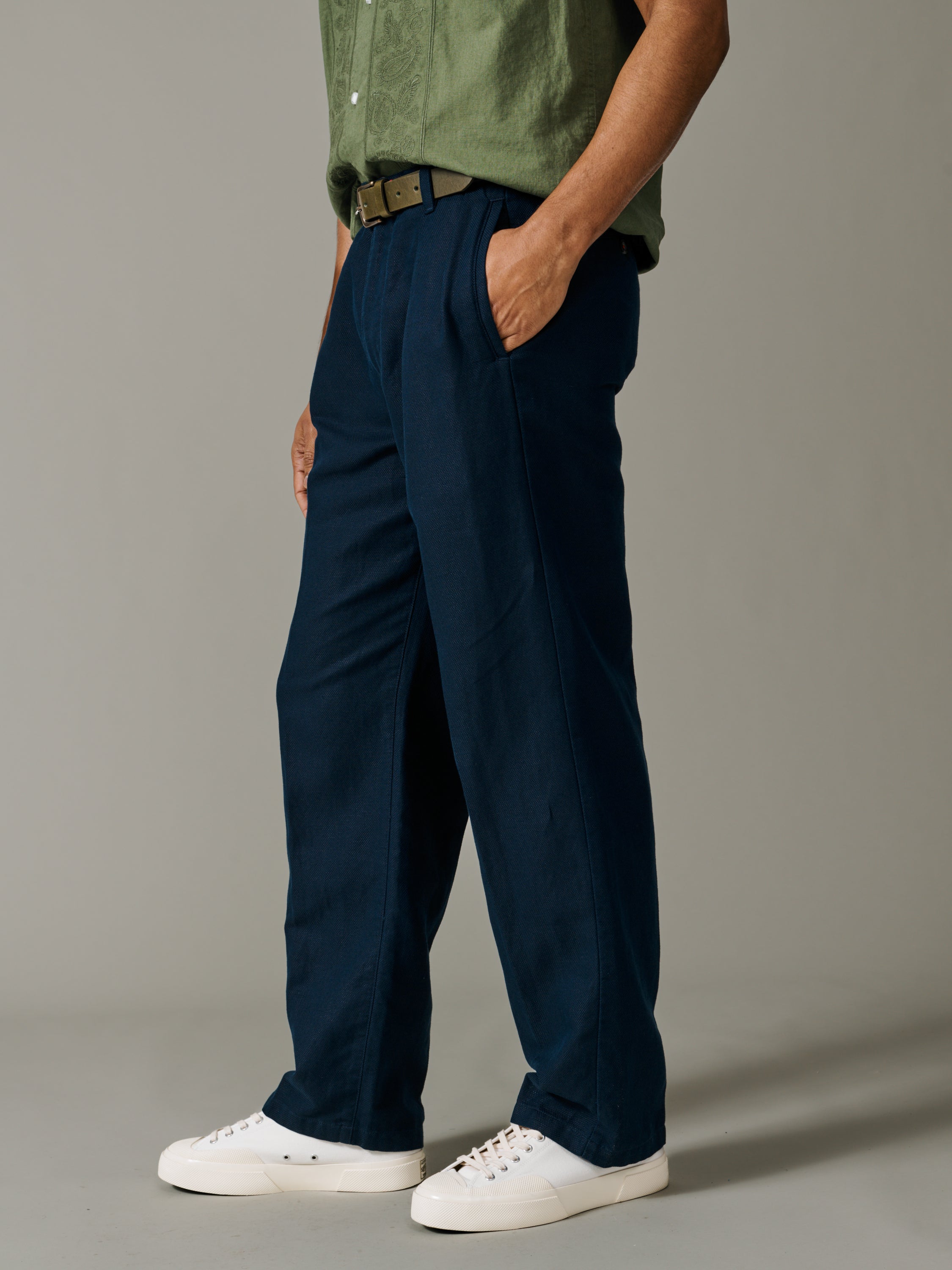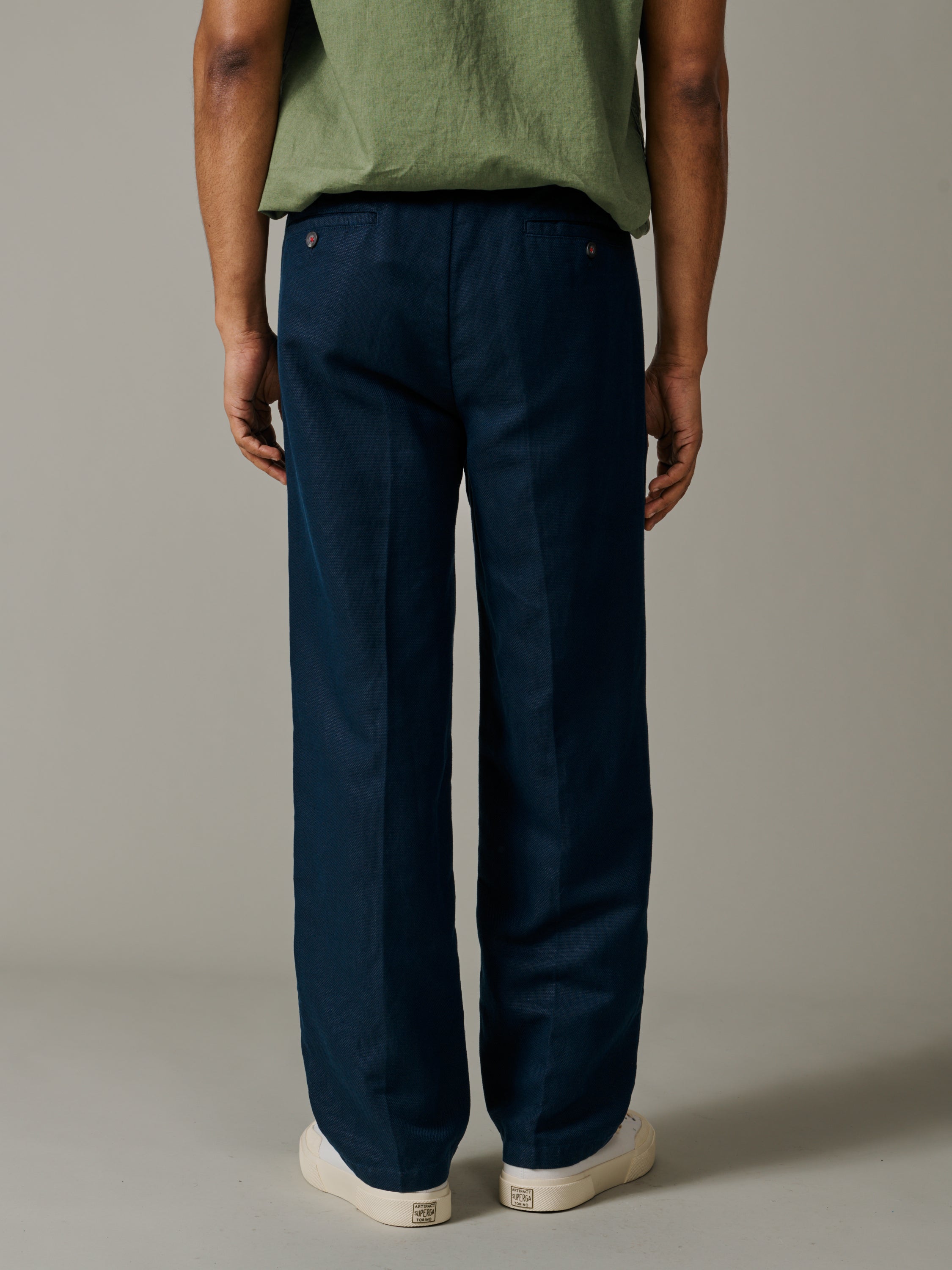 - Double pleat front, with a wider leg silhouette, sit just below the natural waistline
