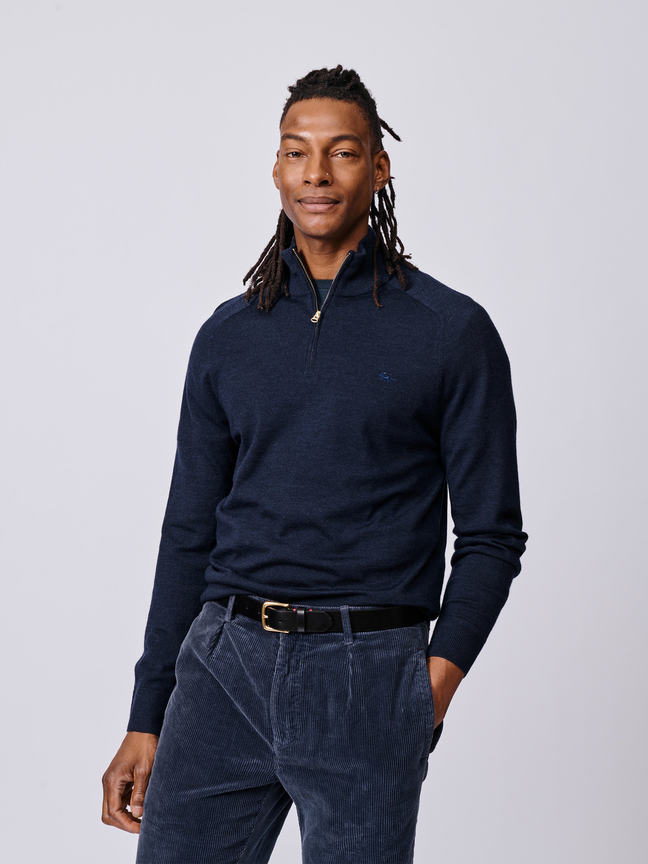 This fine gauge extra fine merino zip neck is the perfect layering piece this season. Light weight yet warm, its versatility knows no bounds.