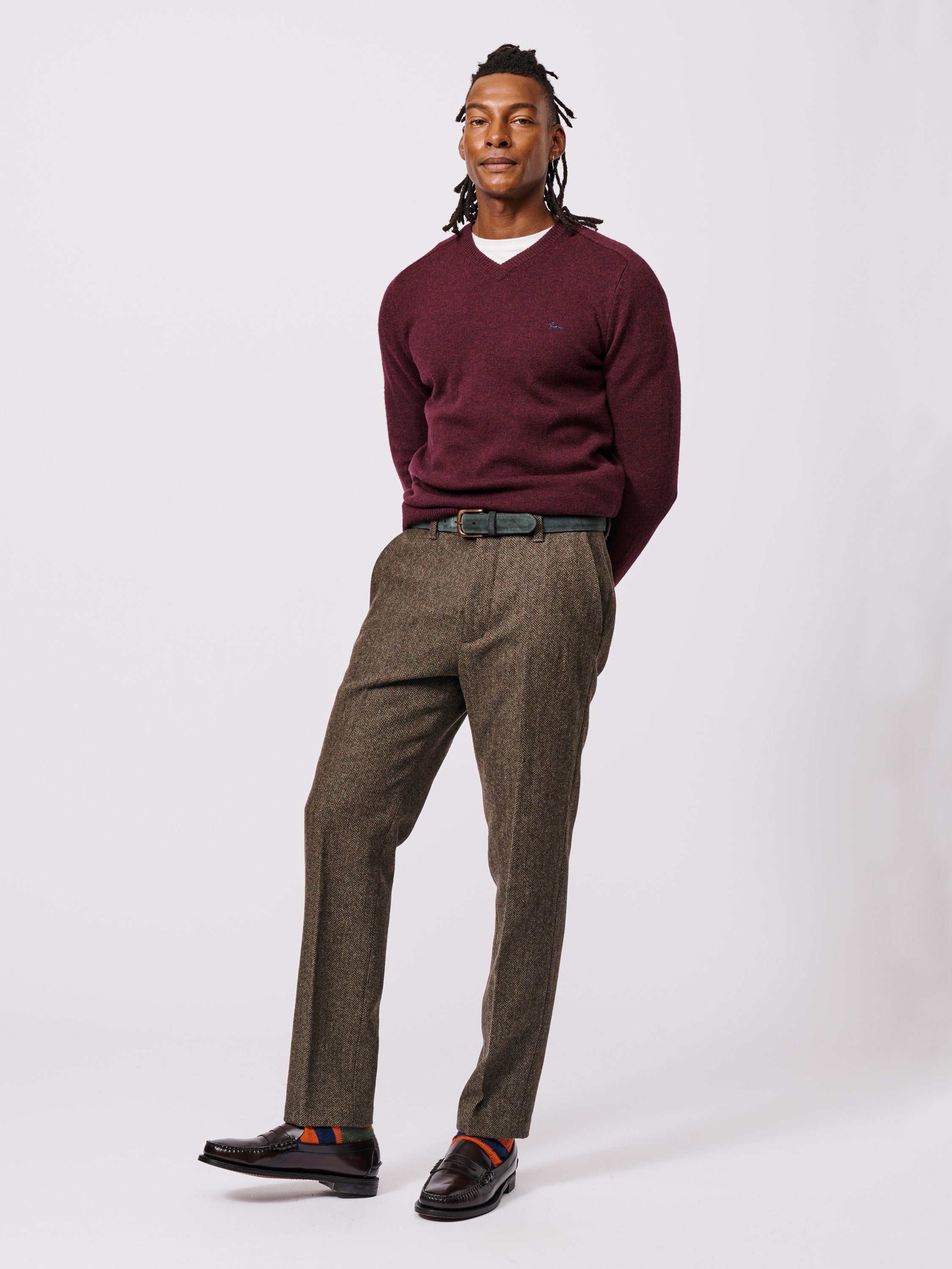 We're answering your calls this winter for a perfectly crafted V-neck. Made using premium extra fine merino yarn, which has the ideal weight and softness for this layering item. Once you put this jumper on you won't want to take it off.