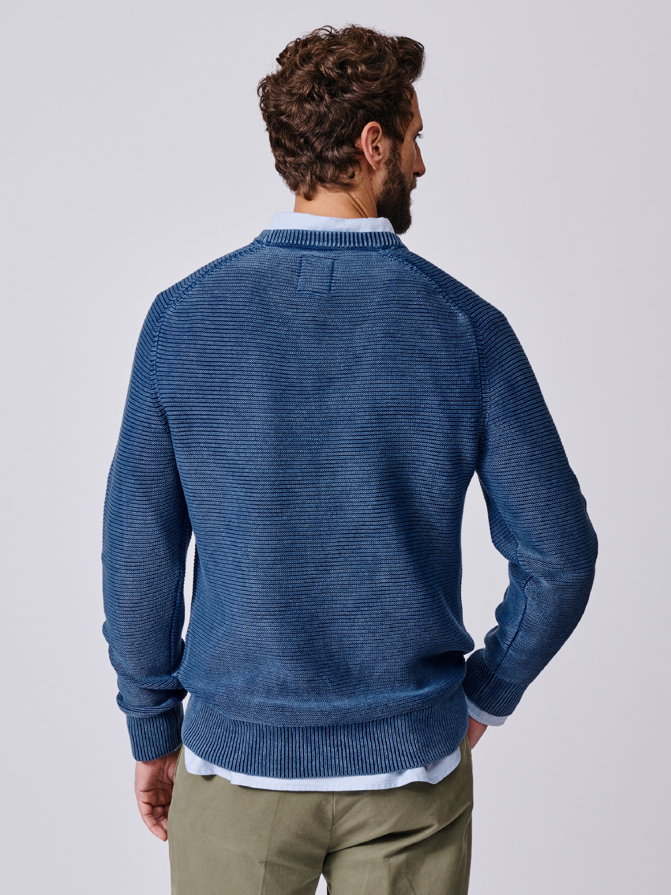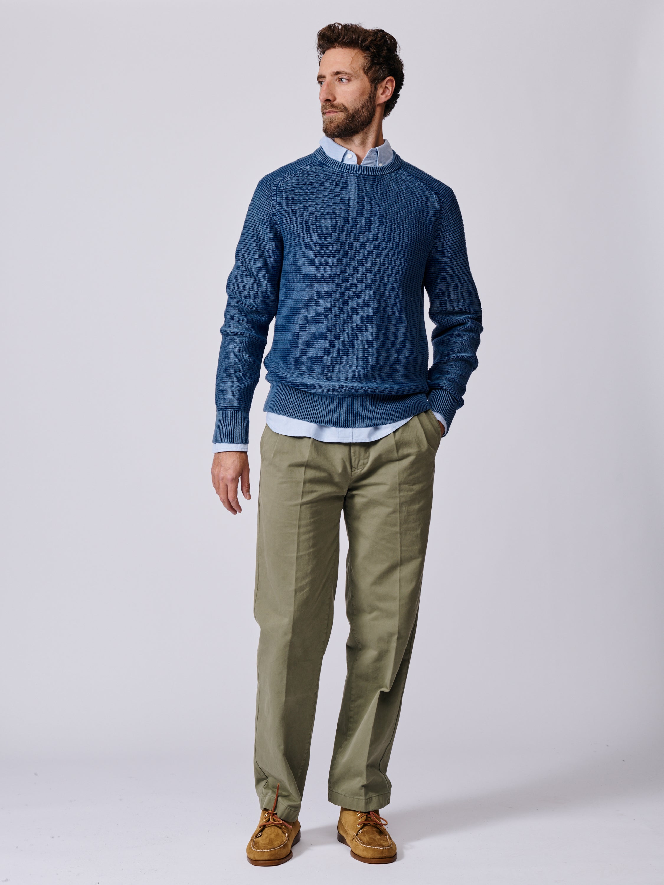 Our knitwear collection is very special to us, and we want you to be able to wear it all year round, so we’ve introduced a new cotton jumper called the Saxilby. This tuck stitch crew neck has a wonderful hand feel and washed appearance. The cotton yarn makes it super versatile.