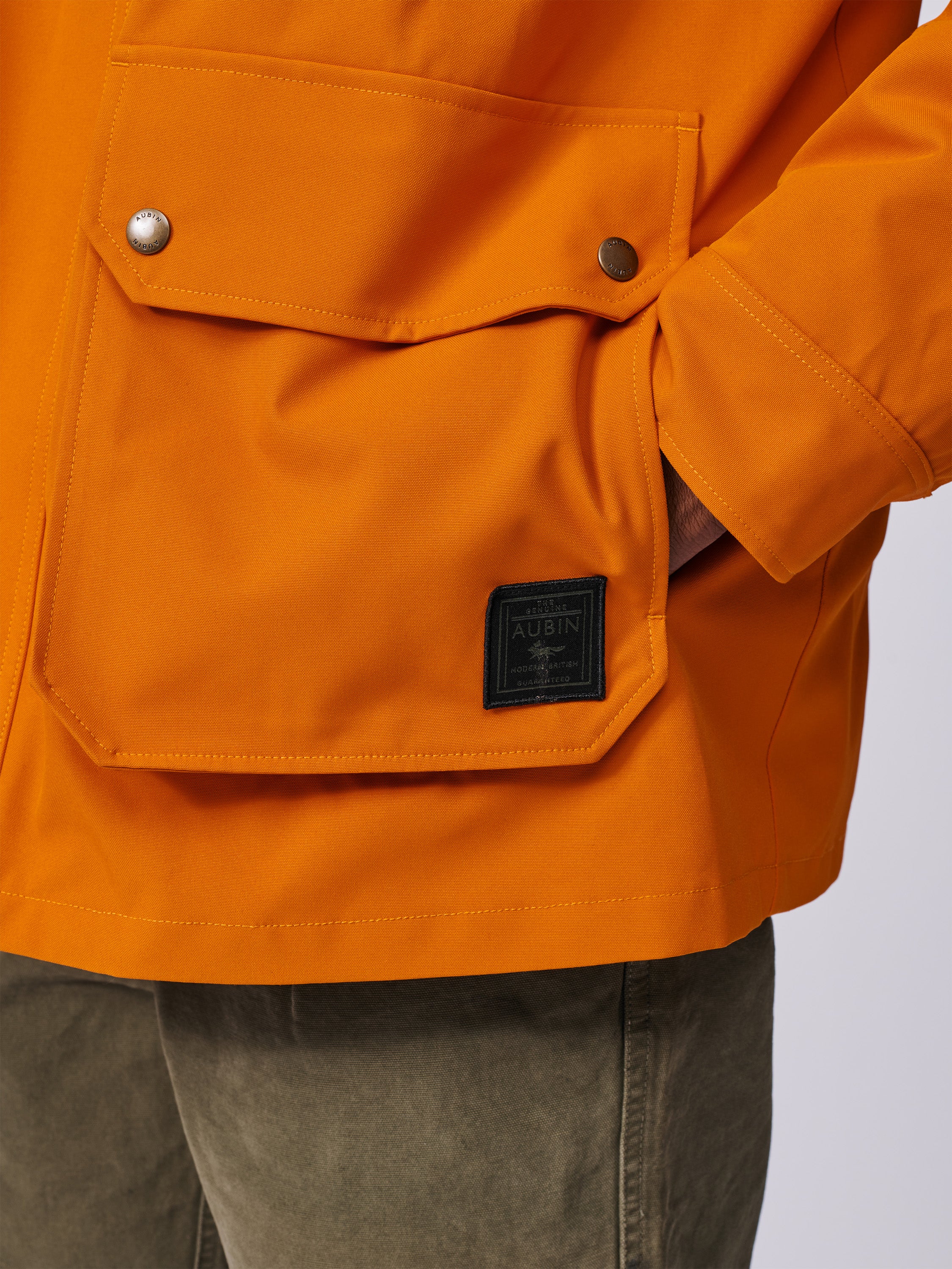 - Aubin branded patch on bottom pocket.