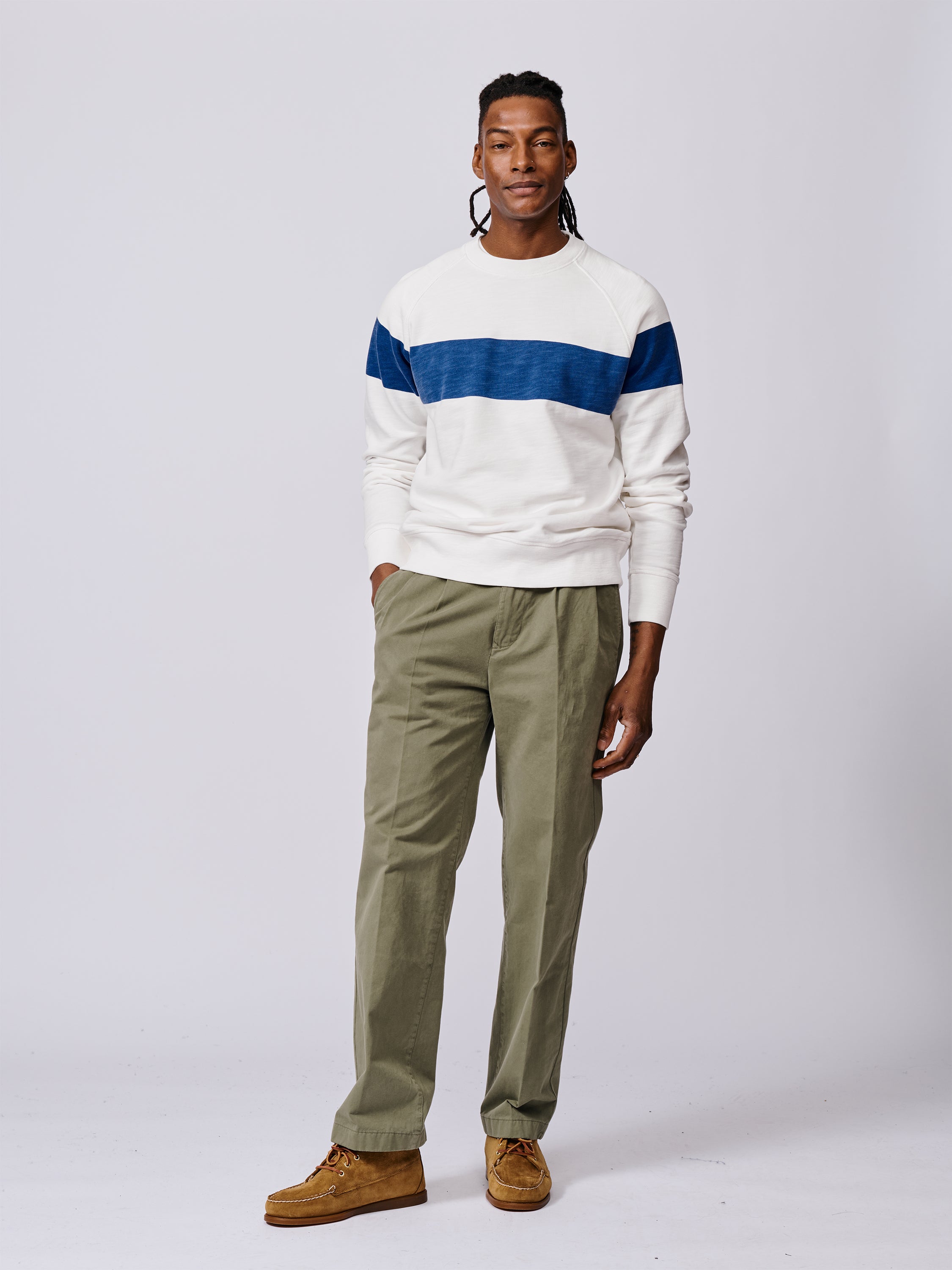 Our Garsdale sweatshirt is made from a lovely and slightly unusual sweat fabric, with a dry hand feel and a gently slubbed texture. The vintage-inspired details we’re fond of are all in place, such as a flat-lock ‘V’ detail at the neck, and a raglan sleeve.