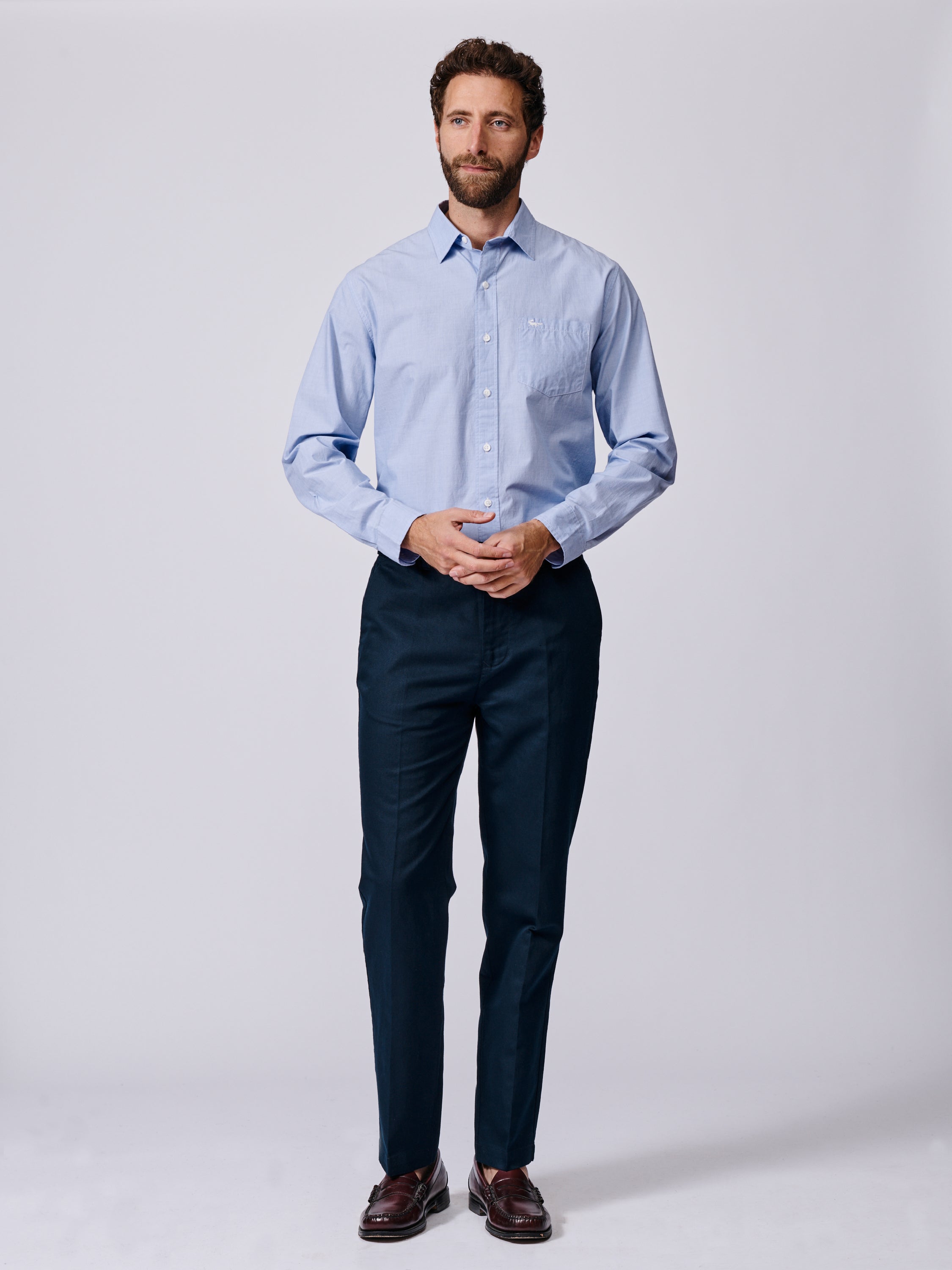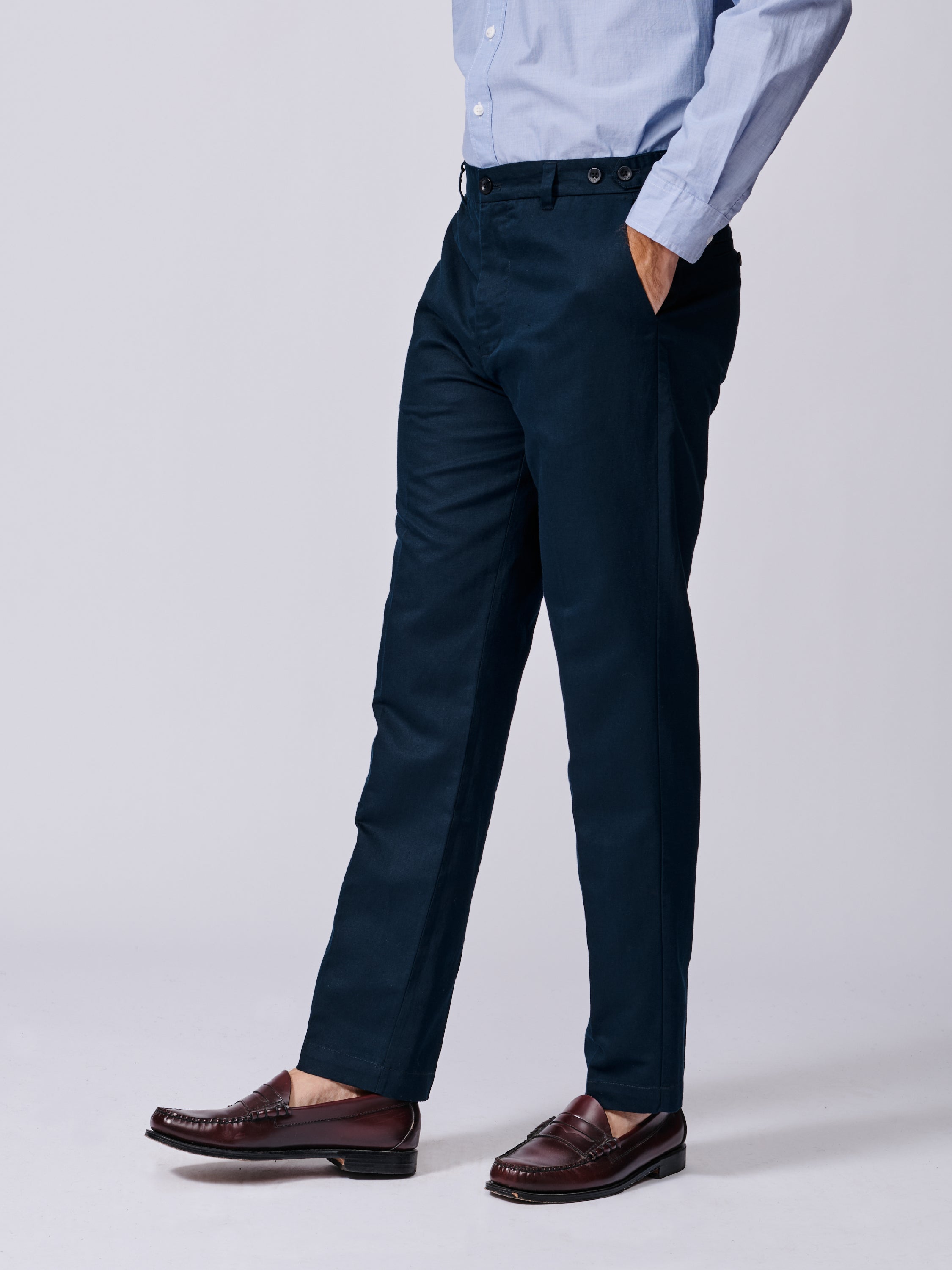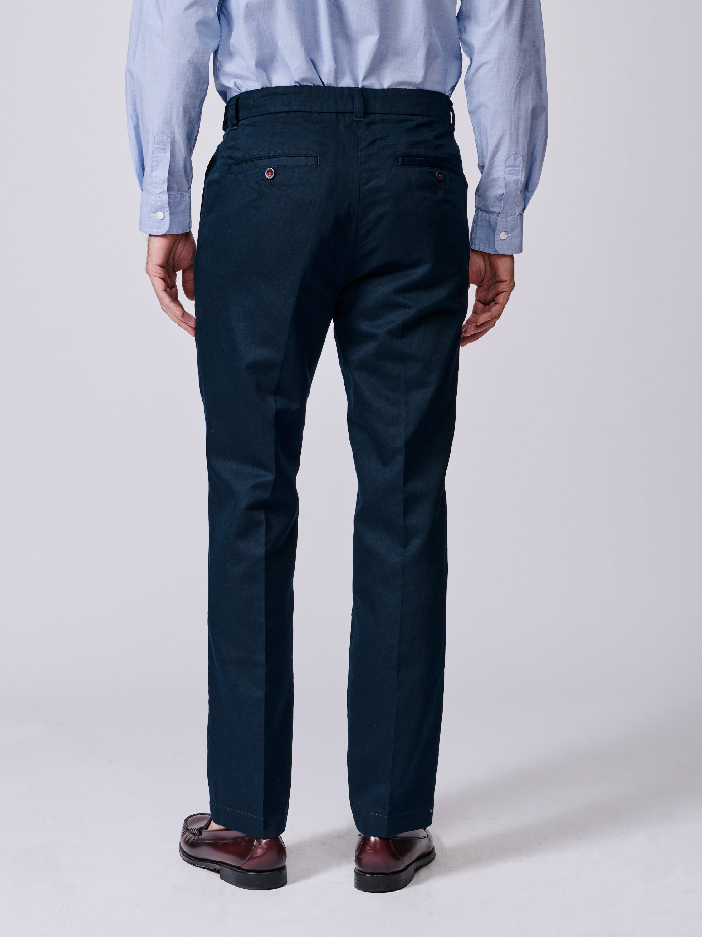 • Flat front, with a straight leg silhouette, sit just below the natural waistline