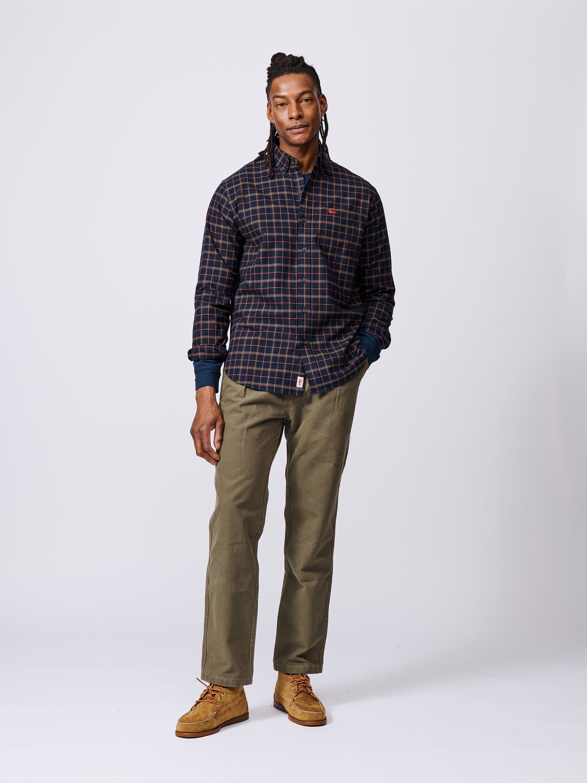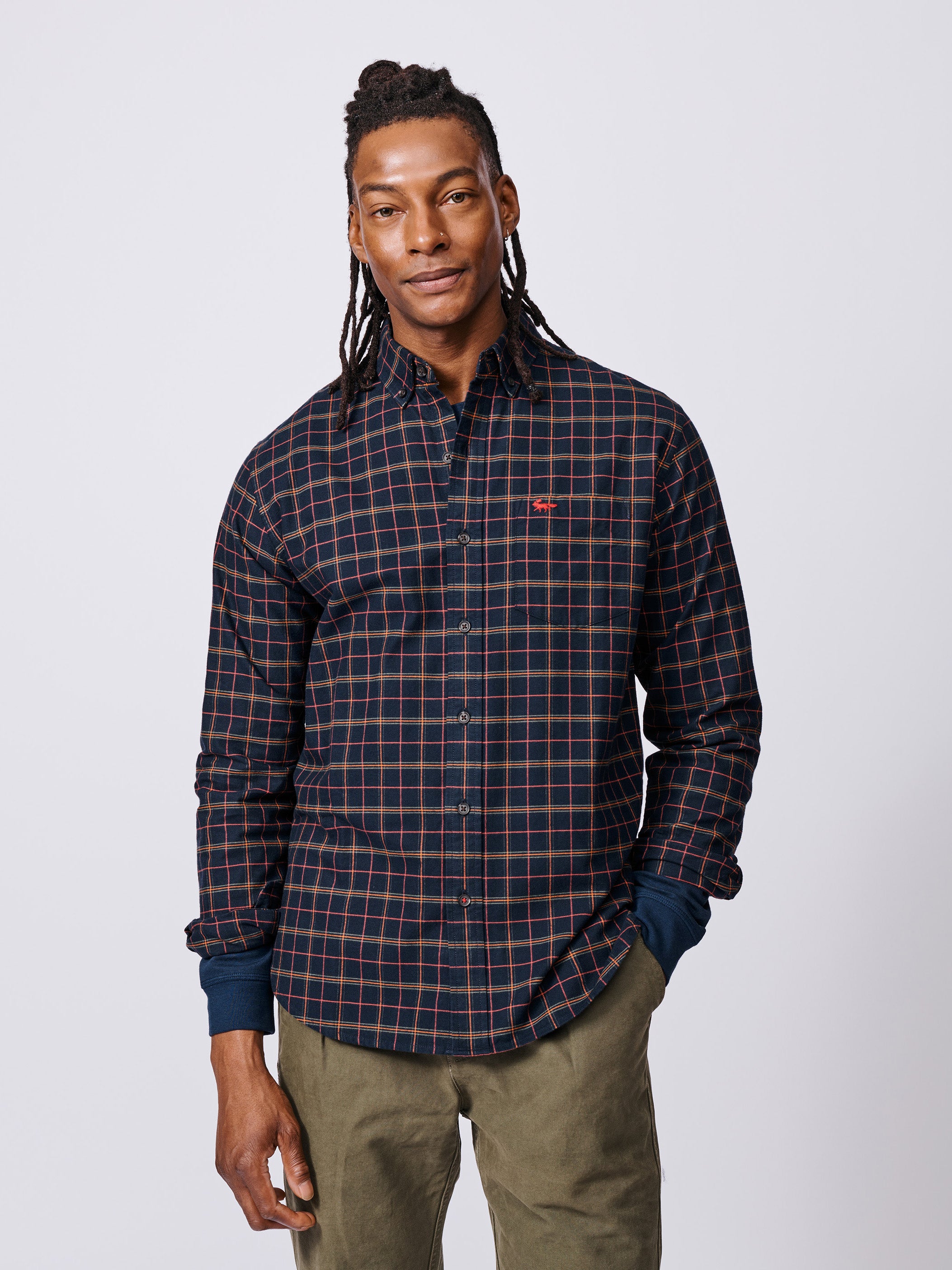 Merton Brushed Oxford Button Down Shirt Navy Check