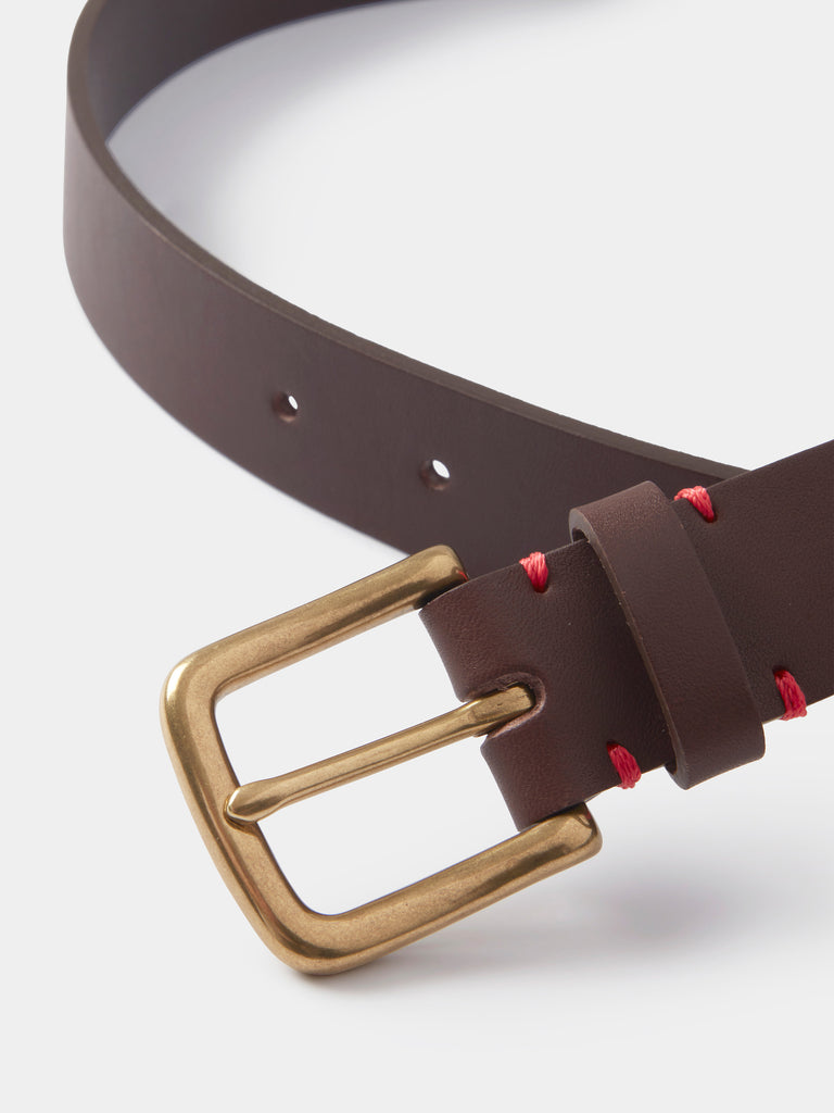 The Thorn leather belt is made in the UK in Melton Mowbray, we use the finest Italian leather that will only improve with age. It has a brass buckle and Aubin red bar tacks to show that it is from us.