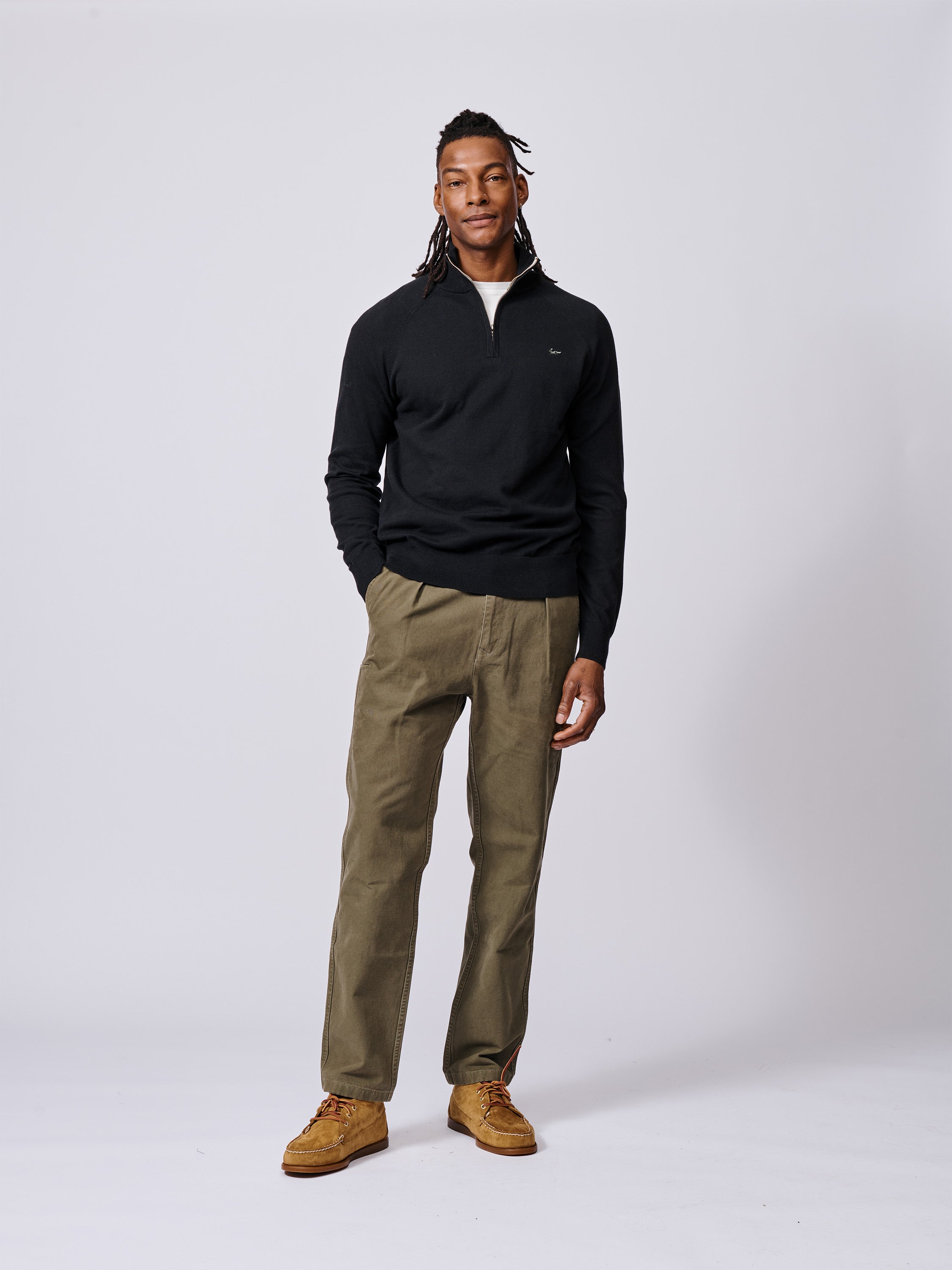 The Bonby’s quarter-zip style and light cotton yarn make it perfect for layering over shirts and tees, as well as underneath jackets and blazers. Hard-working, versatile, and exceptionally easy to style.