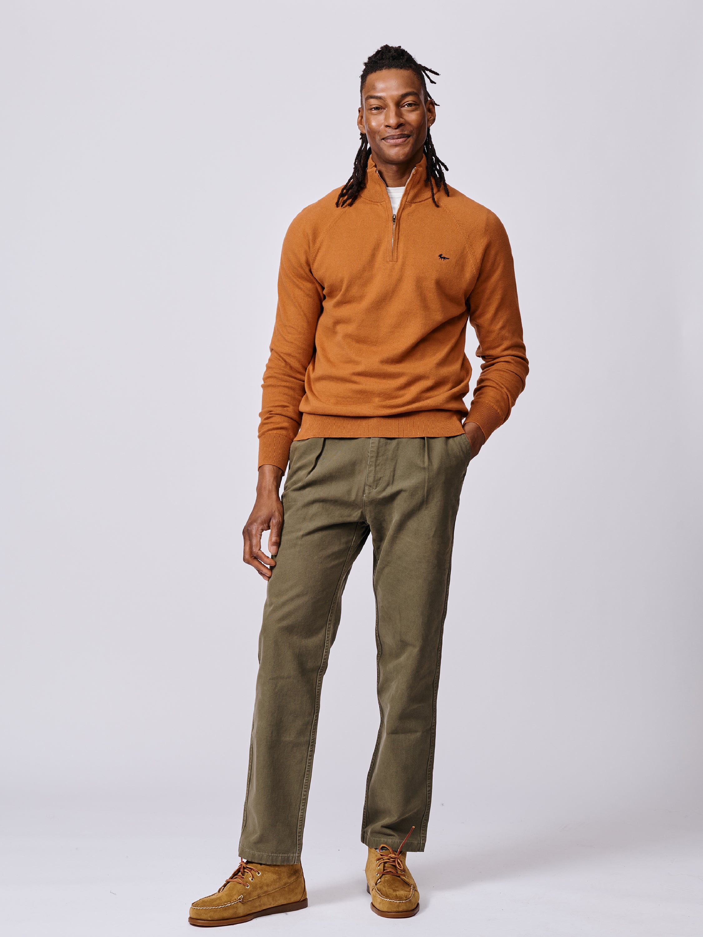 The Bonby’s quarter-zip style and light cotton yarn make it perfect for layering over shirts and tees, as well as underneath jackets and blazers. Hard-working, versatile, and exceptionally easy to style.