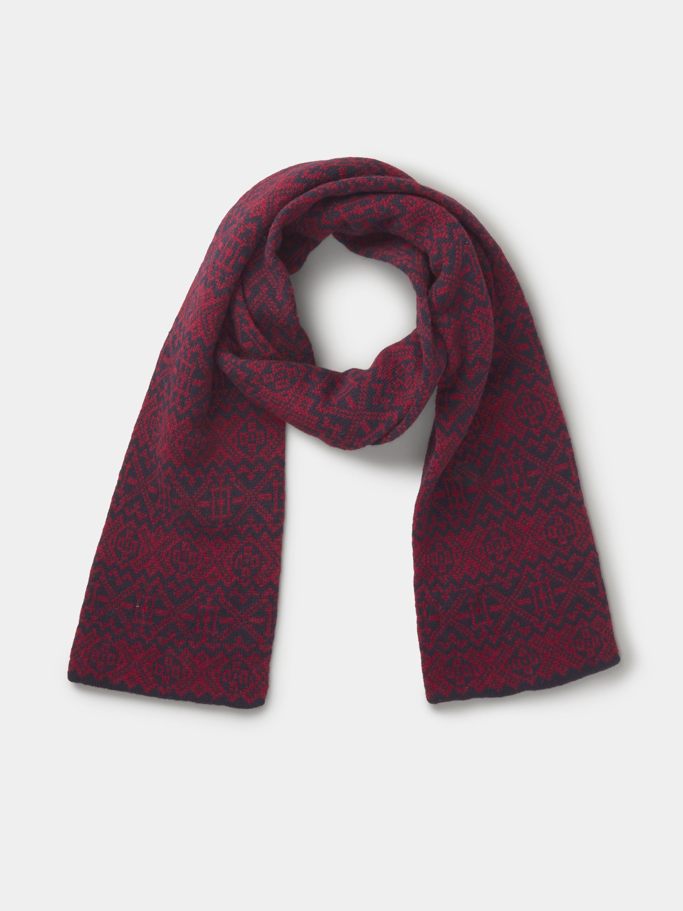 Dudley Fairisle Scarf Burgundy/Navy